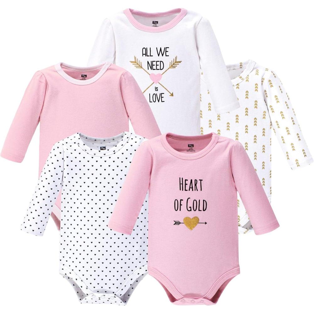 Hudson Baby baby-girls Cotton Long-sleeve Bodysuits 5-pack(Heart)
