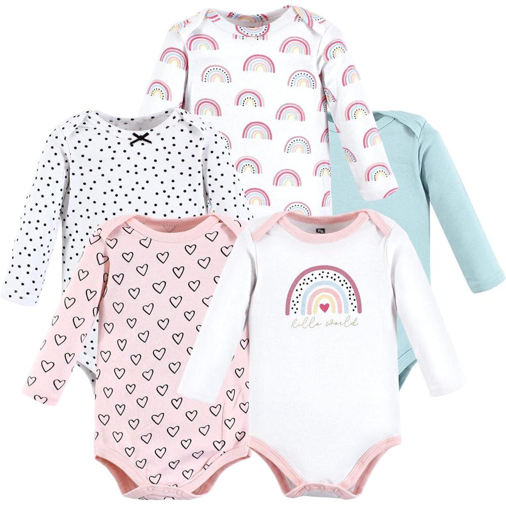 Hudson Baby baby-girls Cotton Long-sleeve Bodysuits 5-pack(Magical Rainbow)
