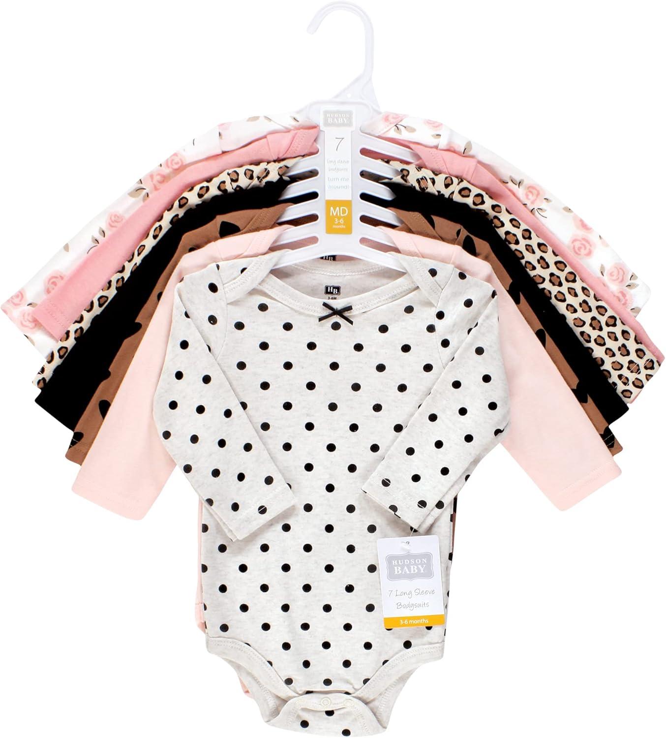 Hudson Baby Baby Girl’s Cotton Long-Sleeve Bodysuits 7-Pack(Cinnamon Pink Prints)