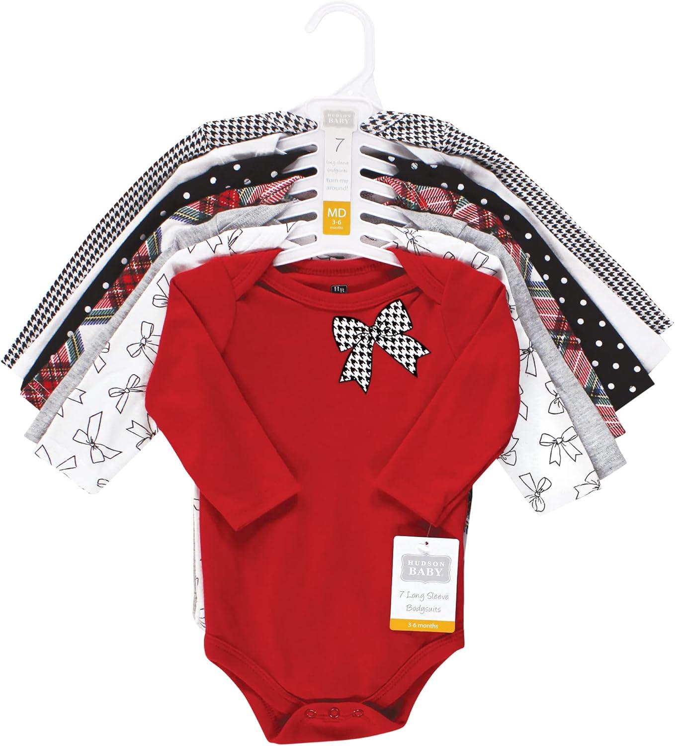 Hudson Baby Baby Girl’s Cotton Long-Sleeve Bodysuits 7-Pack(Winter Bows)