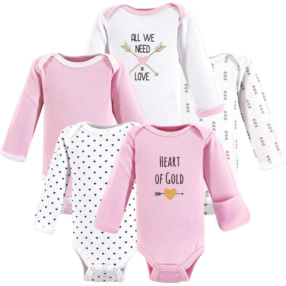 Hudson Baby baby-girls Cotton Preemie Bodysuits(Heart Long-sleeve)