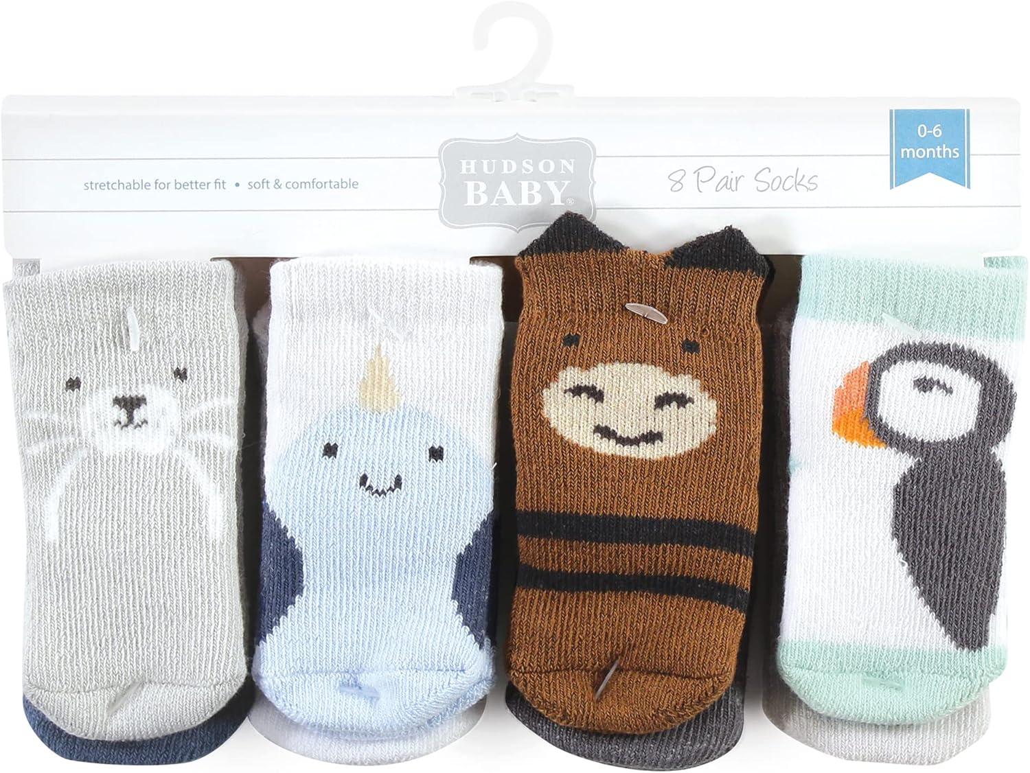 Hudson Baby Baby Girls’ Cotton Rich Newborn and Terry Socks(Arctic Animals)