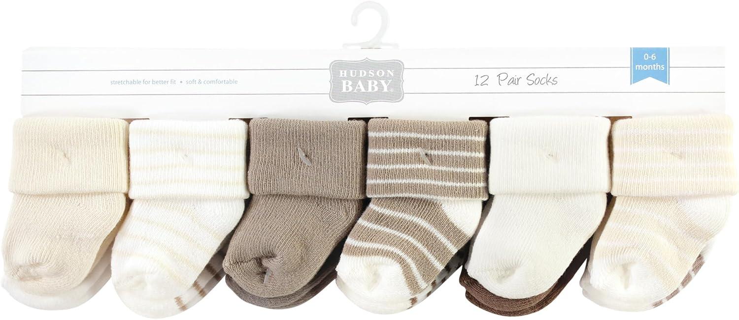Hudson Baby Baby Girls’ Cotton Rich Newborn and Terry Socks(Beige Stripe 12 Pack)
