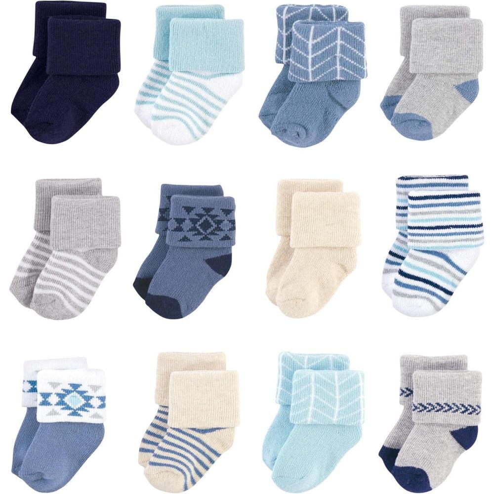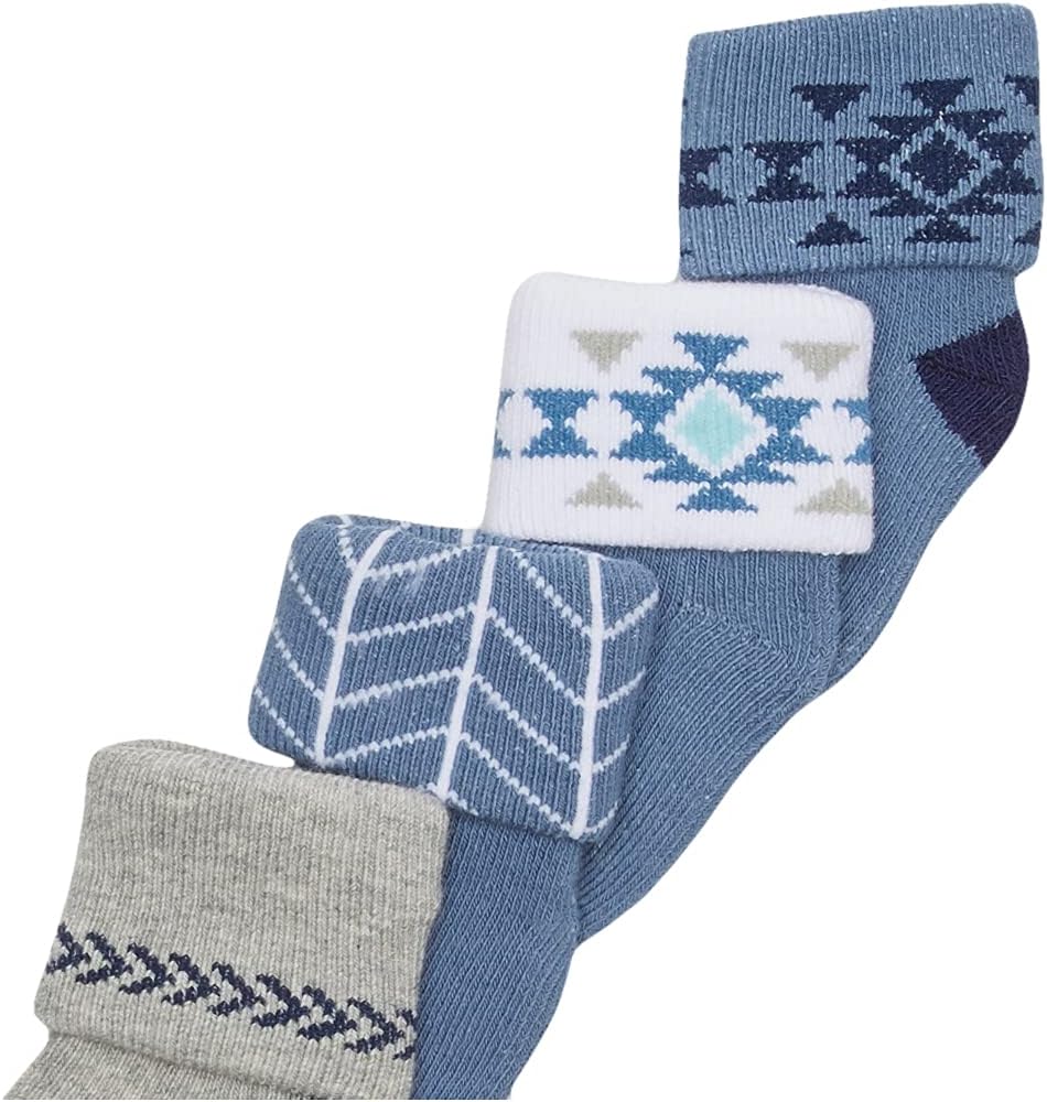 Hudson Baby Baby Girls’ Cotton Rich Newborn and Terry Socks(Blue Gray Aztec)