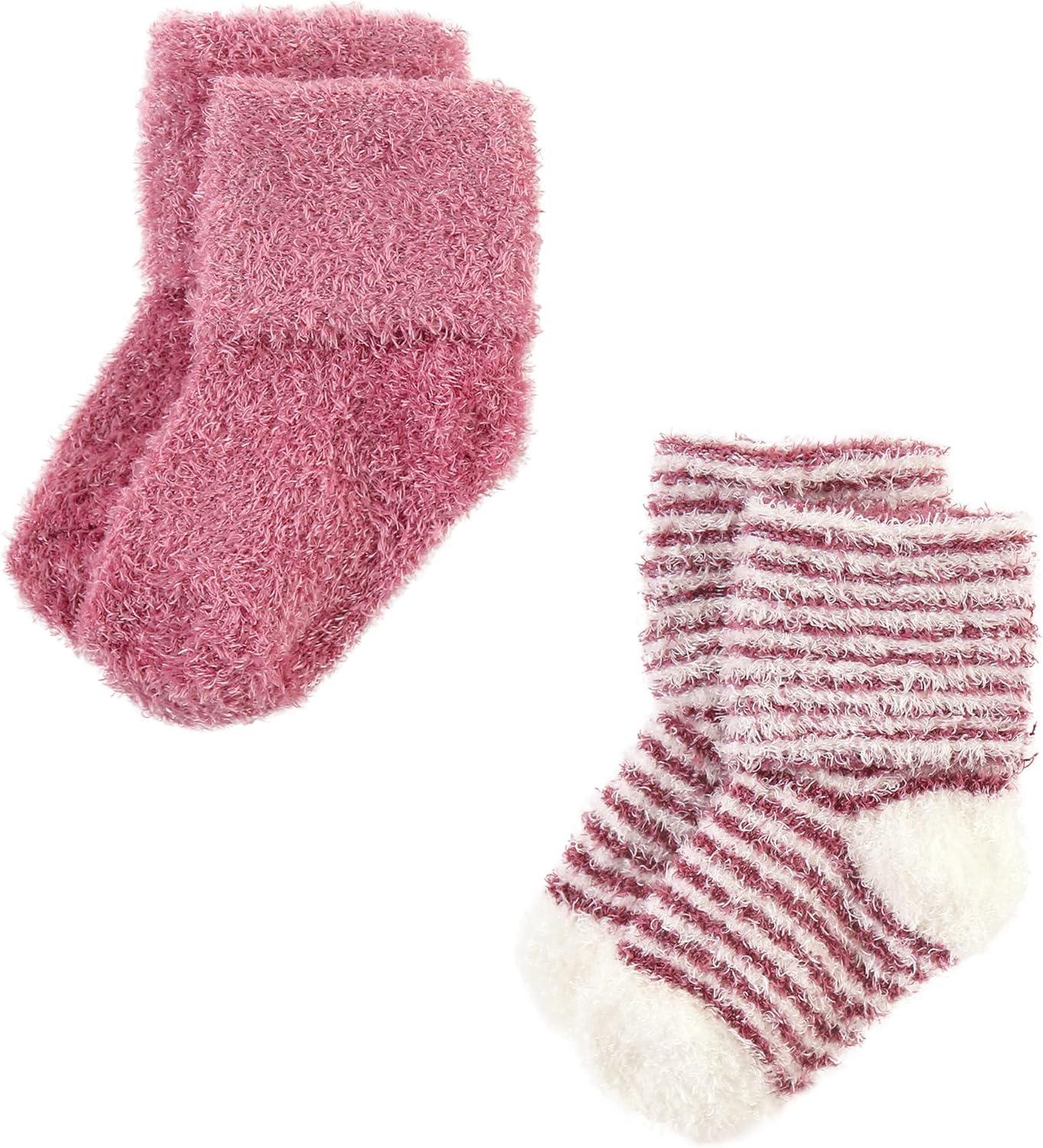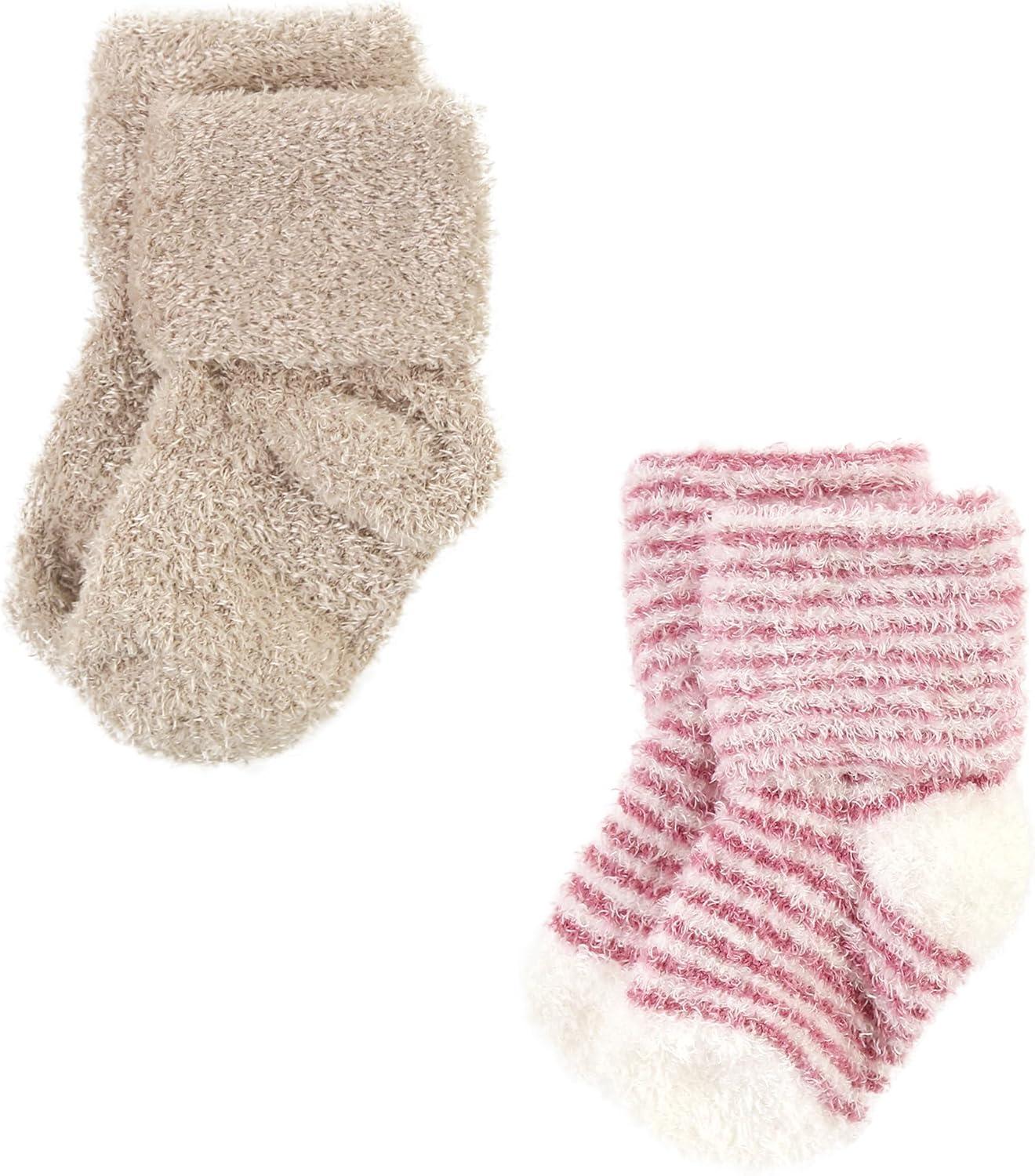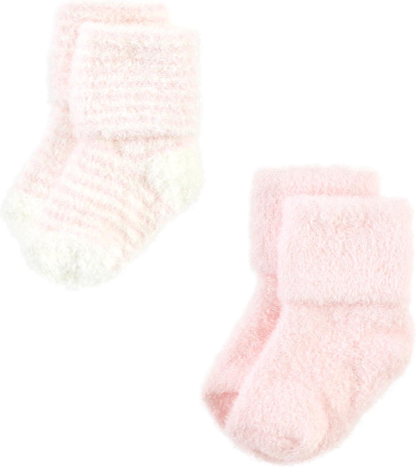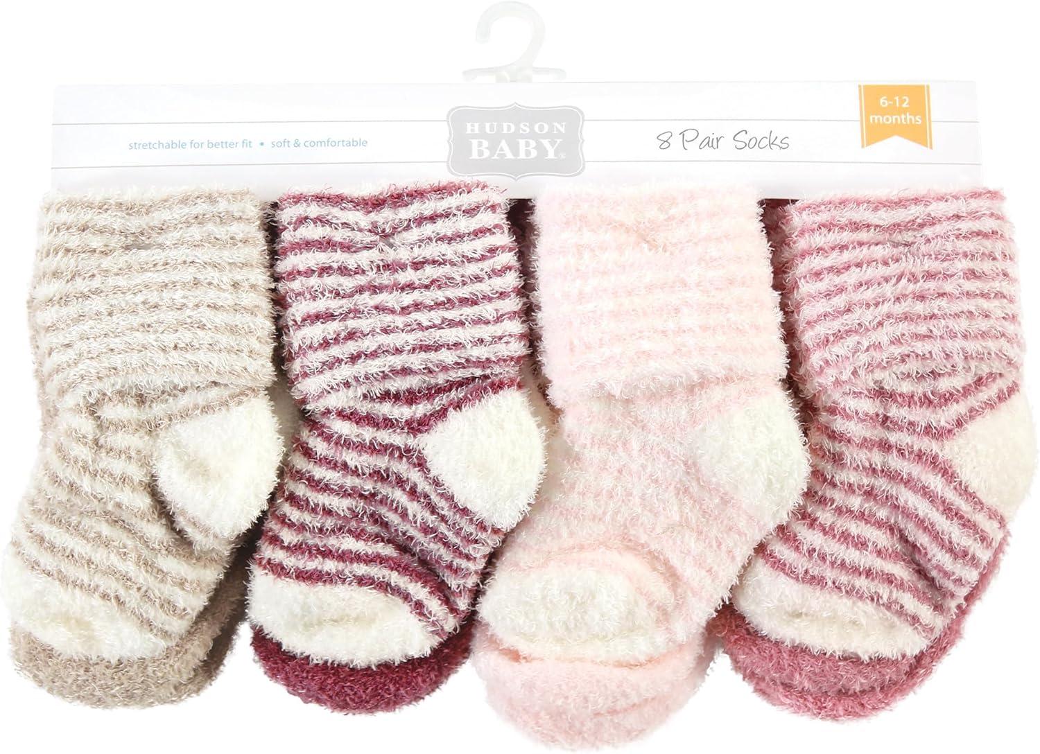 Hudson Baby Baby Girls’ Cotton Rich Newborn and Terry Socks(Blush Pink Stripe)
