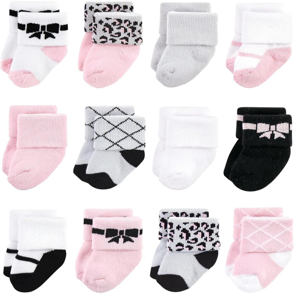 Hudson Baby Baby Girls’ Cotton Rich Newborn and Terry Socks(Gentleman 12-pack)
