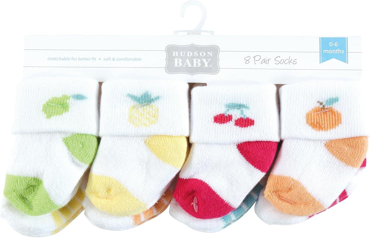 Hudson Baby Baby Girls’ Cotton Rich Newborn and Terry Socks(Fruity)