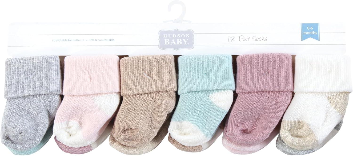 Hudson Baby Baby Girls’ Cotton Rich Newborn and Terry Socks(Girl Soft Asst Colors)