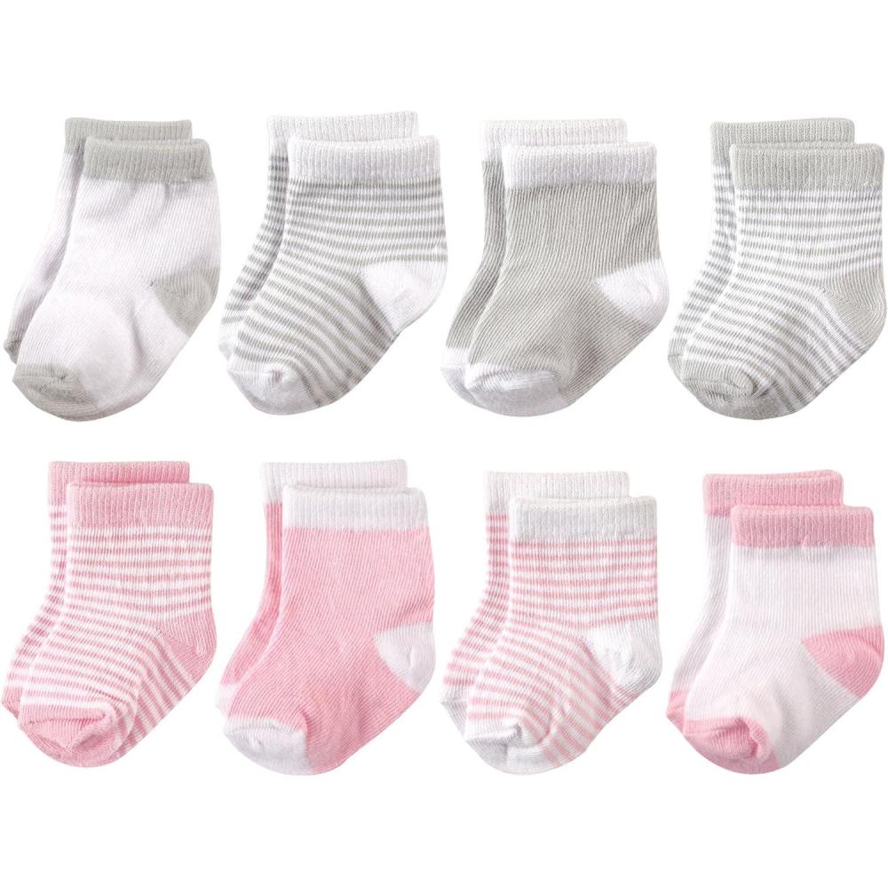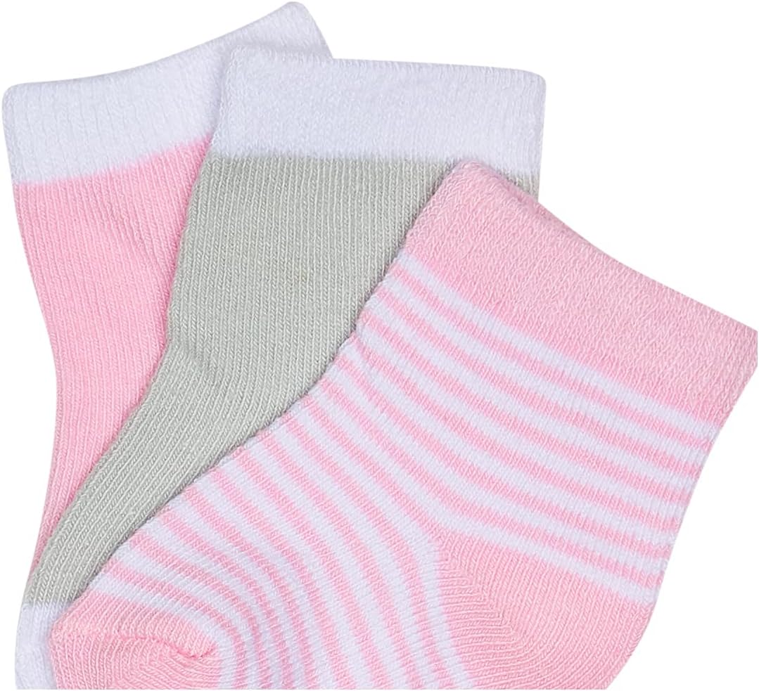 Hudson Baby Baby Girls’ Cotton Rich Newborn and Terry Socks(Light Pink Gray)