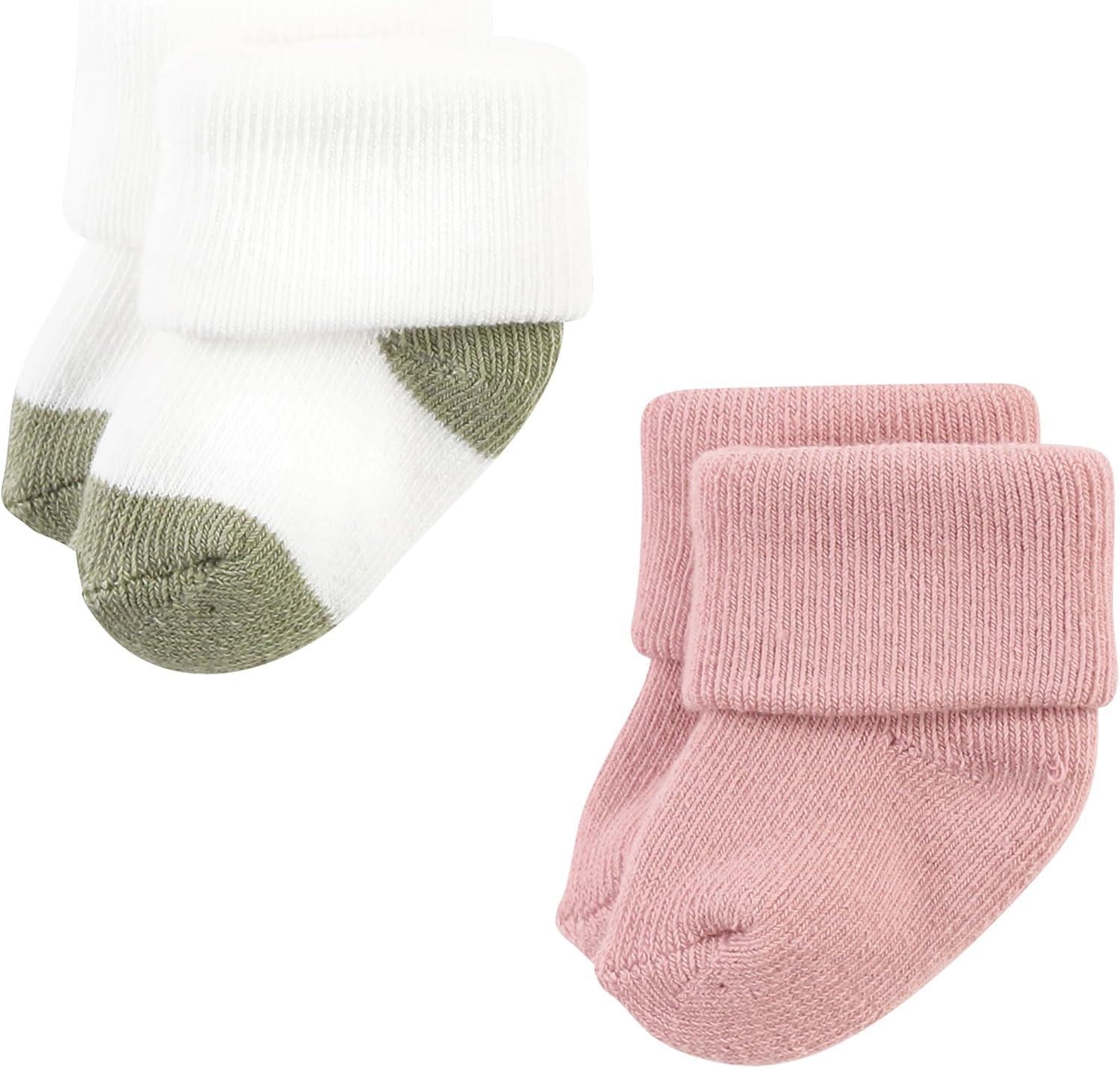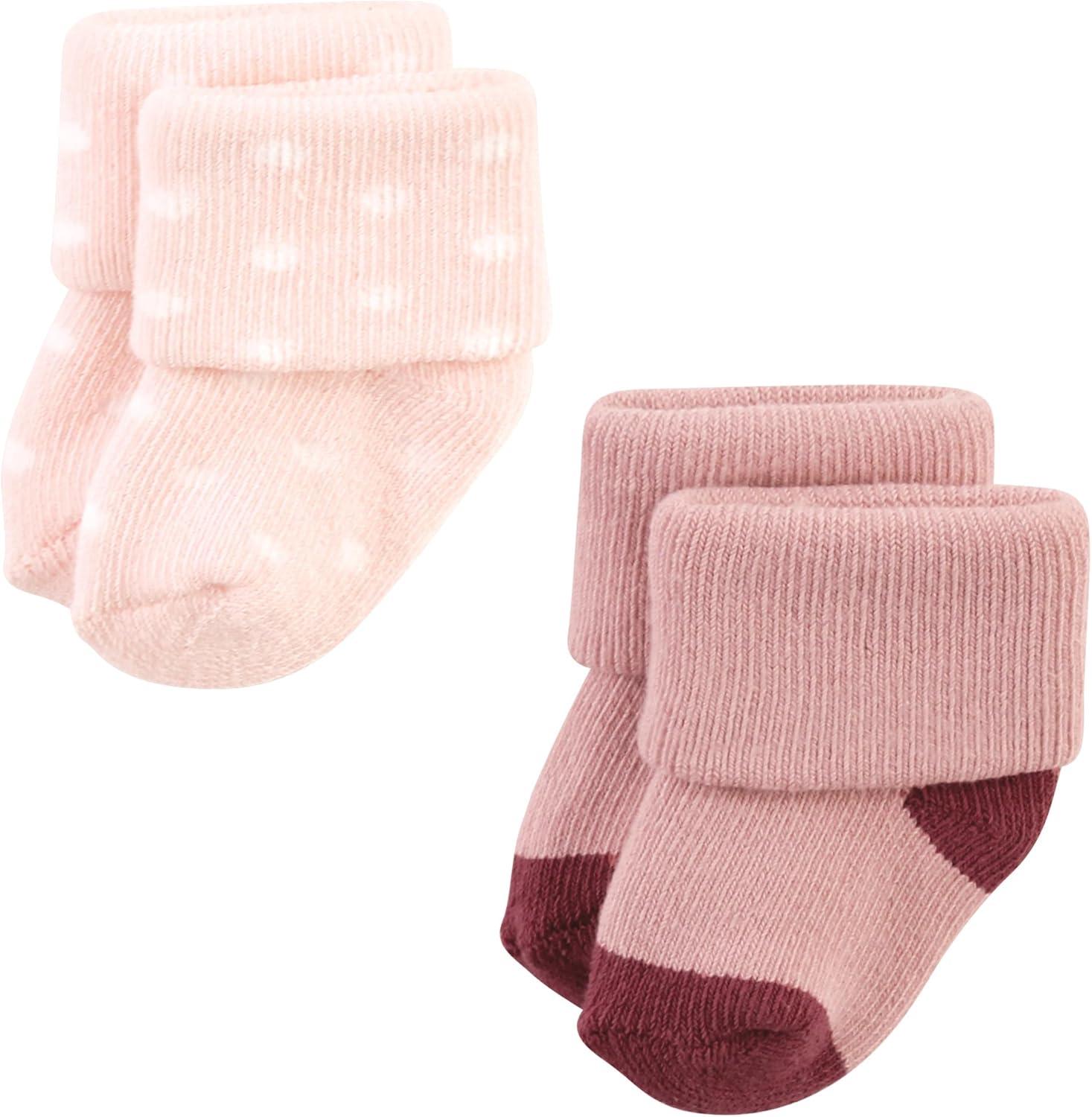 Hudson Baby Baby Girls’ Cotton Rich Newborn and Terry Socks(Mauve Sage Dot)