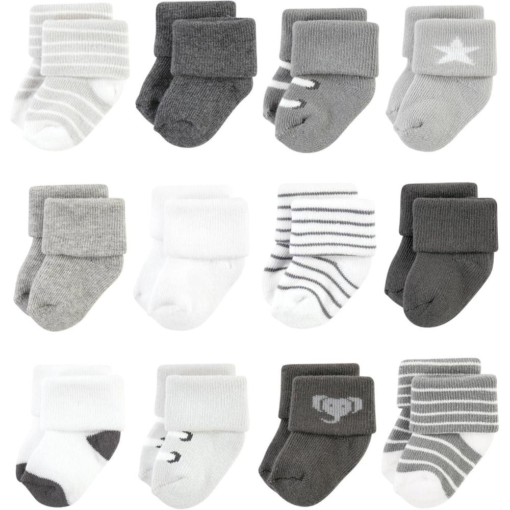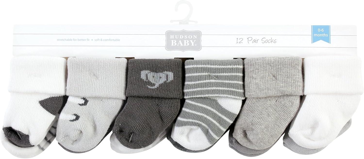 Hudson Baby Baby Girls’ Cotton Rich Newborn and Terry Socks(Modern Elephant)