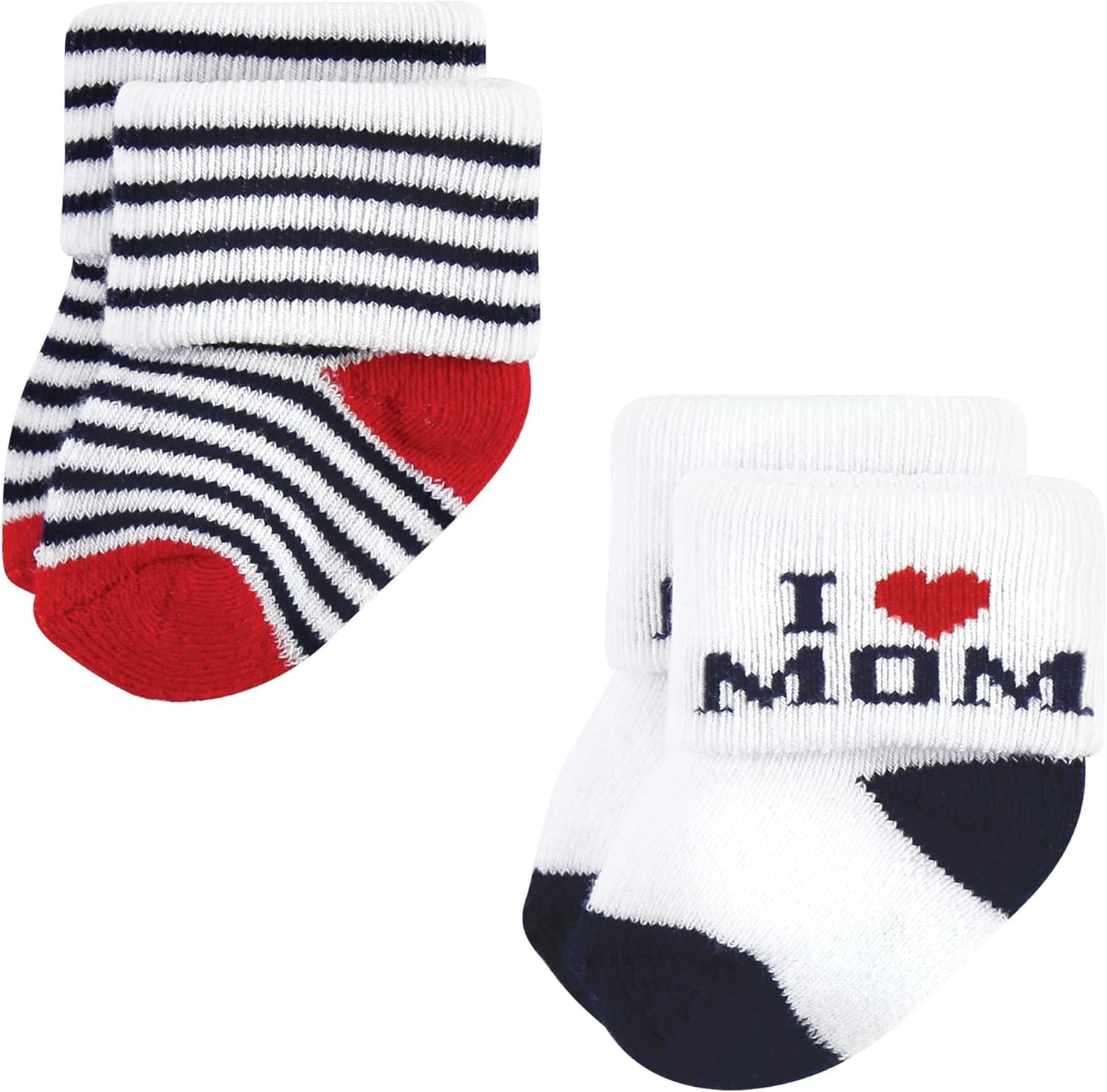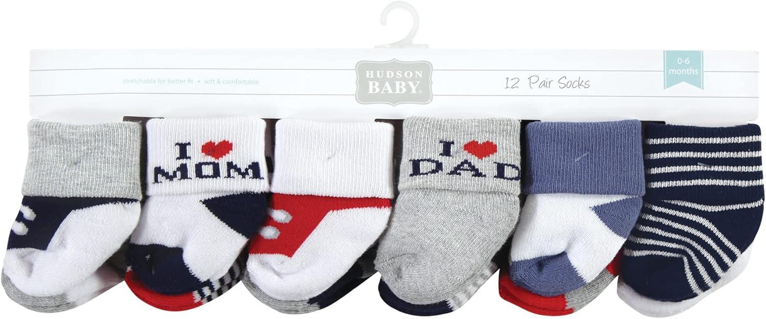 Hudson Baby Baby Girls’ Cotton Rich Newborn and Terry Socks(Mom Dad Boy Navy Red)