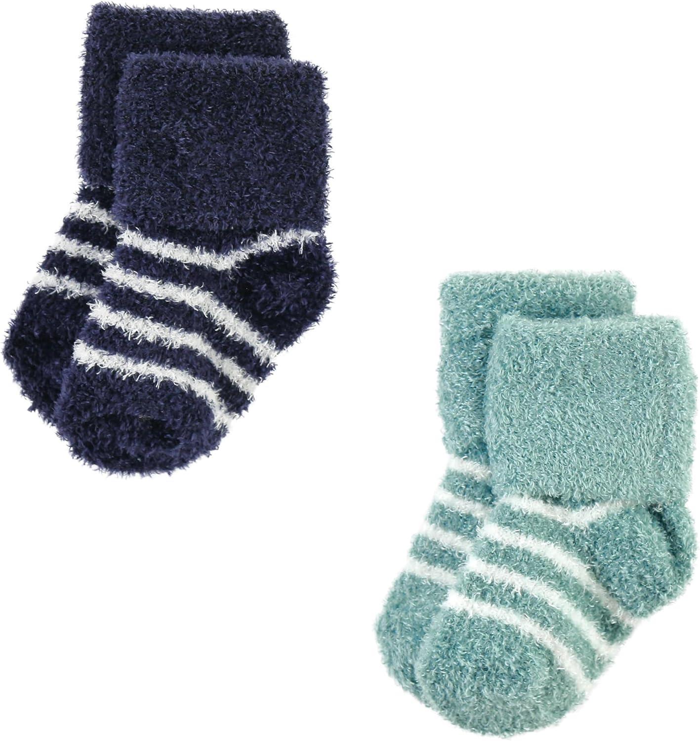 Hudson Baby Baby Girls’ Cotton Rich Newborn and Terry Socks(Navy Mint Stripe)