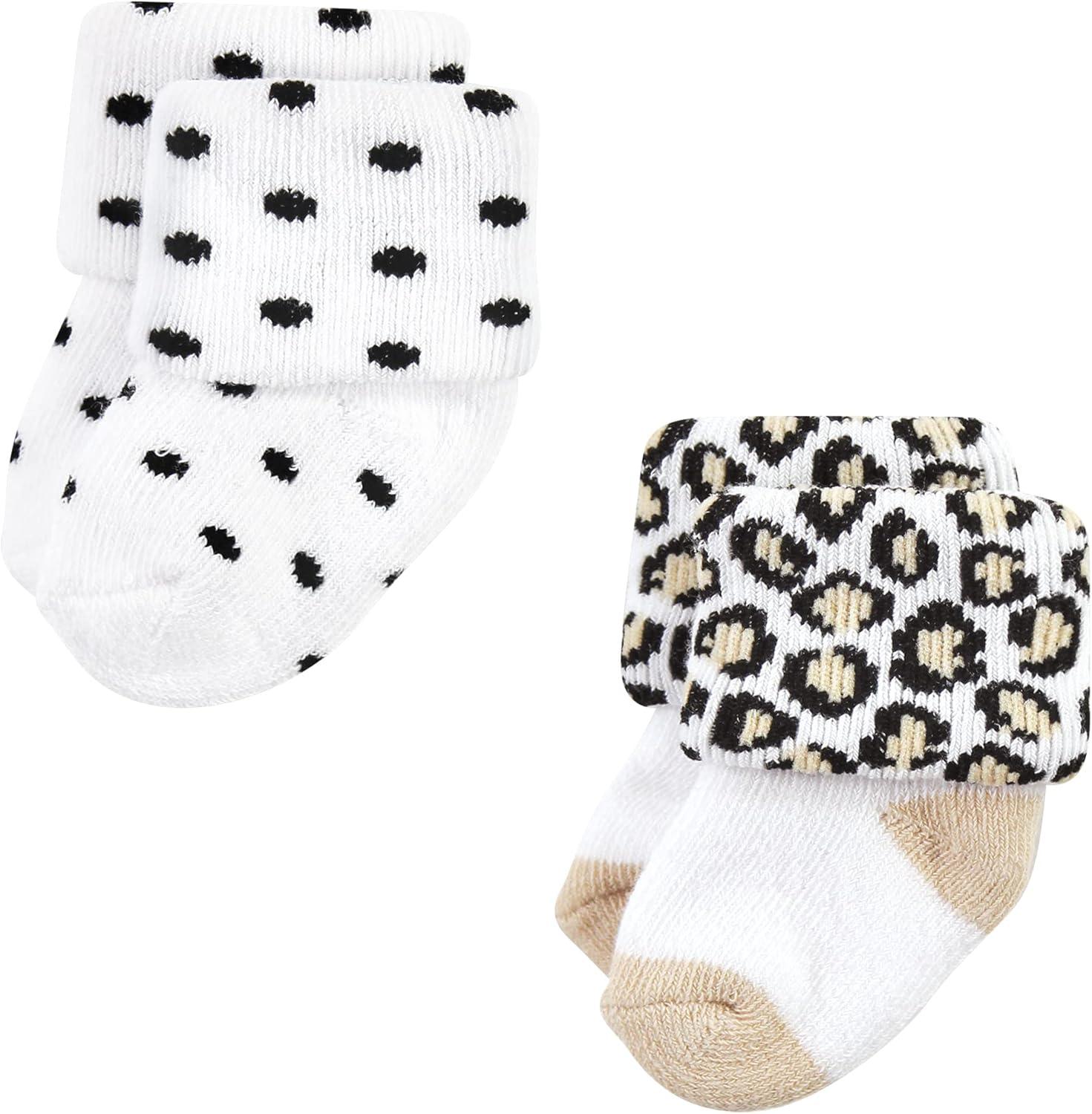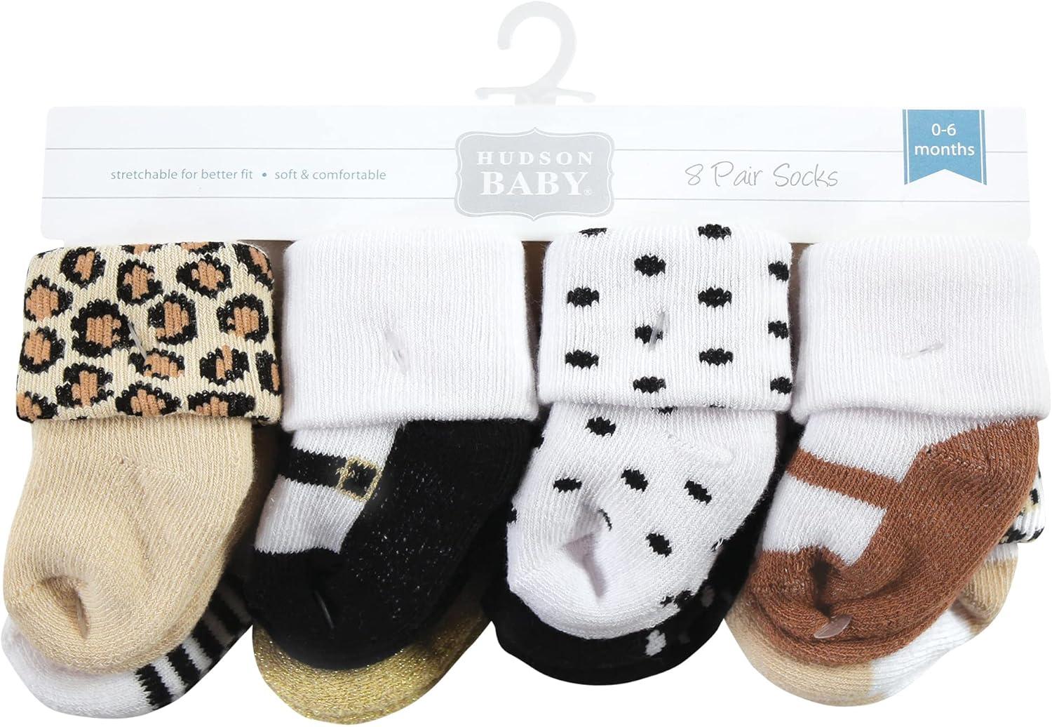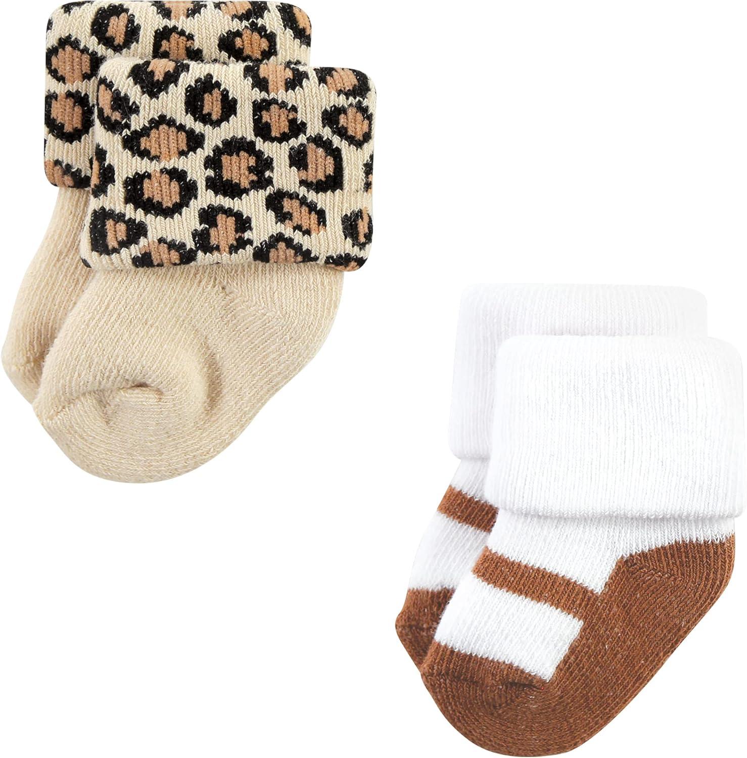 Hudson Baby Baby Girls’ Cotton Rich Newborn and Terry Socks(Neutral Leopard)