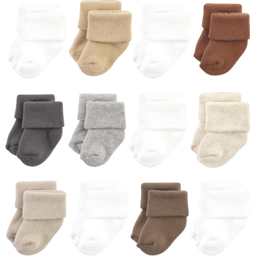 Hudson Baby Baby Girls’ Cotton Rich Newborn and Terry Socks(Neutral Tones)