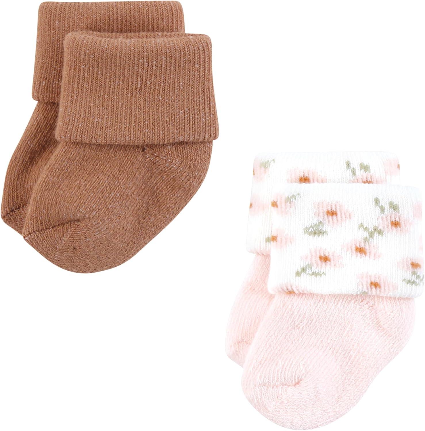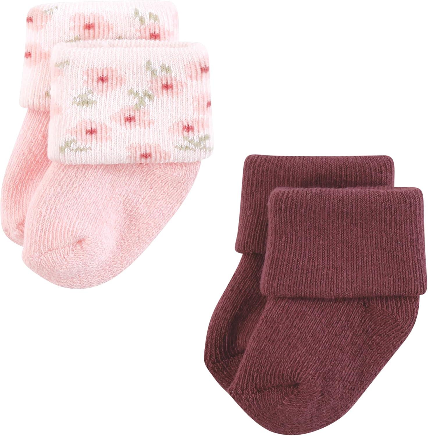 Hudson Baby Baby Girls’ Cotton Rich Newborn and Terry Socks(Pink Dainty Floral)