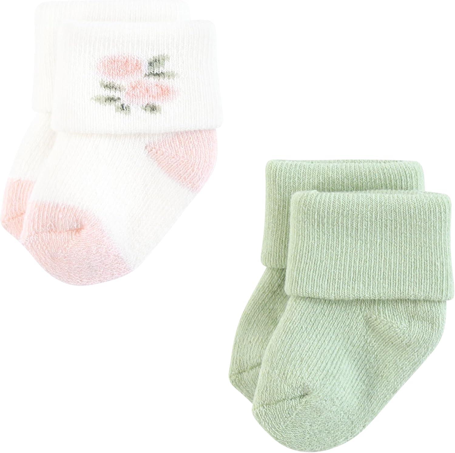 Hudson Baby Baby Girls’ Cotton Rich Newborn and Terry Socks(Pink Sage Rose)