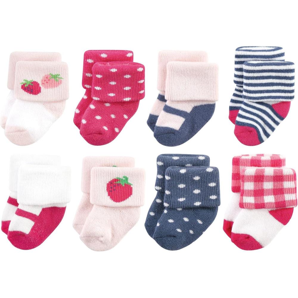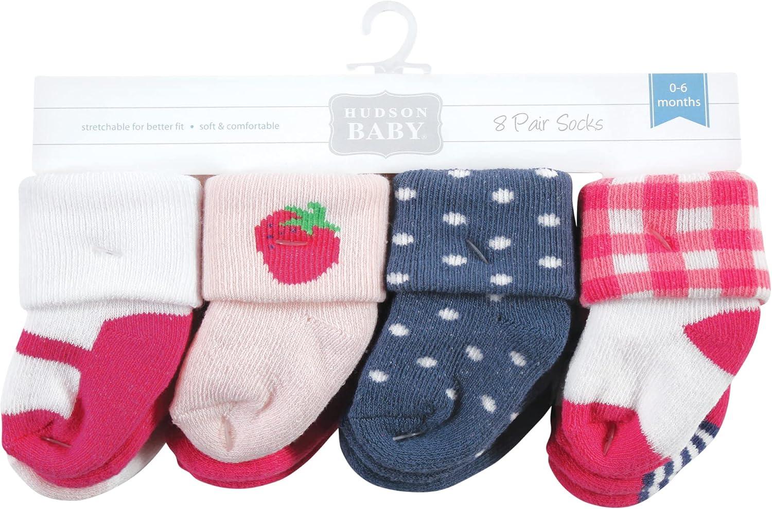 Hudson Baby Baby Girls’ Cotton Rich Newborn and Terry Socks(Pink Strawberry)