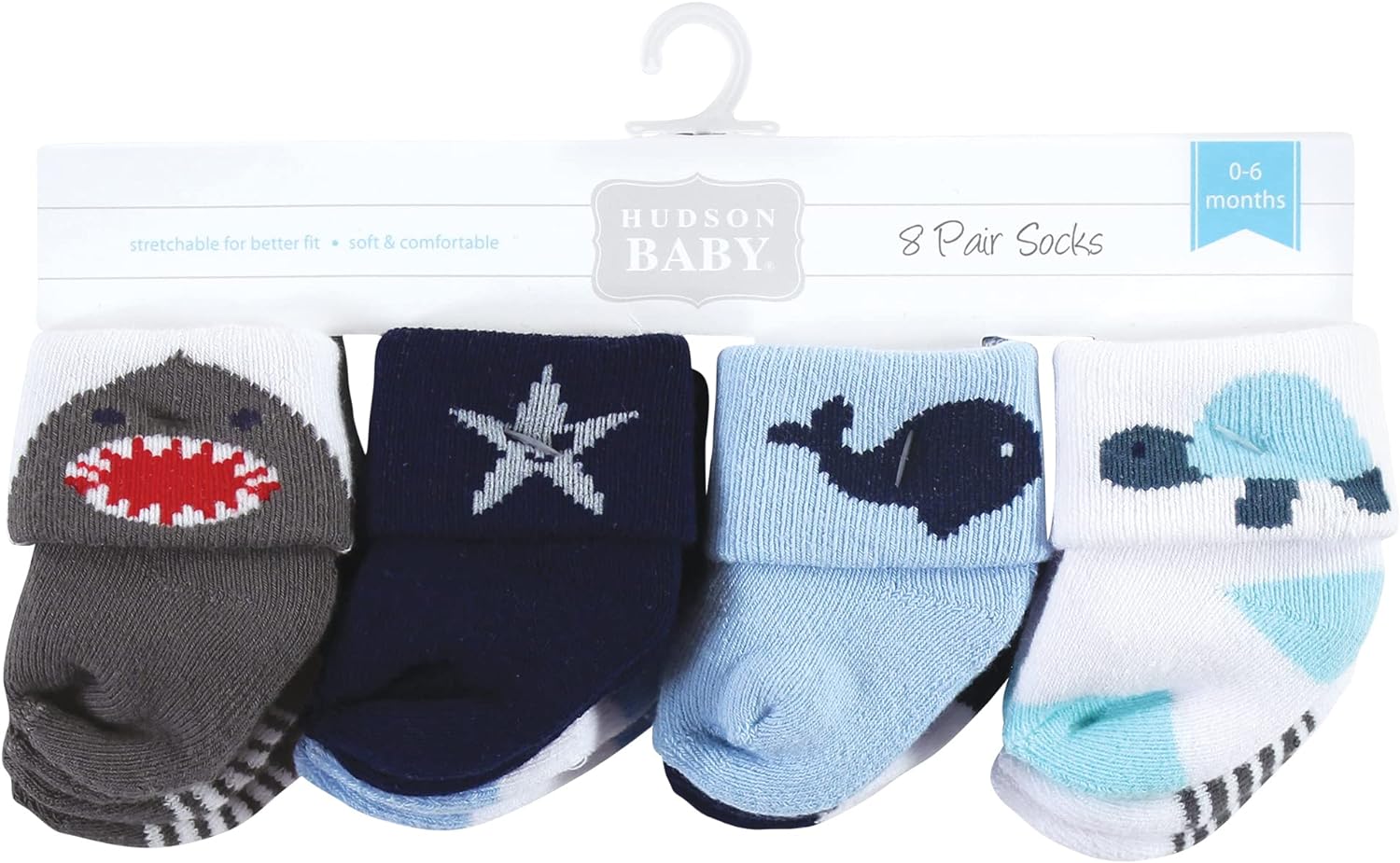 Hudson Baby Baby Girls’ Cotton Rich Newborn and Terry Socks(Sea Creatures)