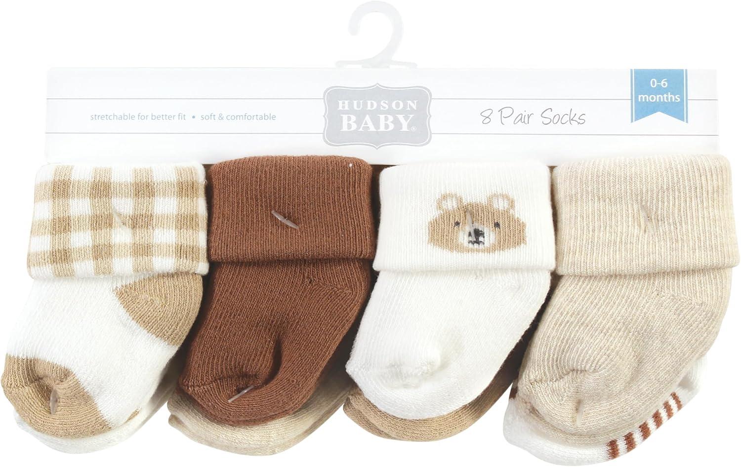 Hudson Baby Baby Girls’ Cotton Rich Newborn and Terry Socks(Teddy Bear)