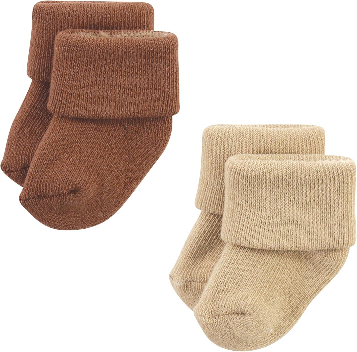 Hudson Baby Baby Girls’ Cotton Rich Newborn and Terry Socks(Teal Brown Stripe)