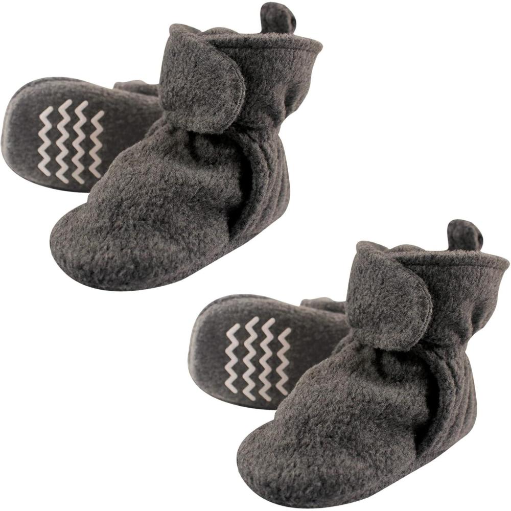 Hudson Baby baby-girls Cozy Fleece Booties(Charcoal 2-pack)
