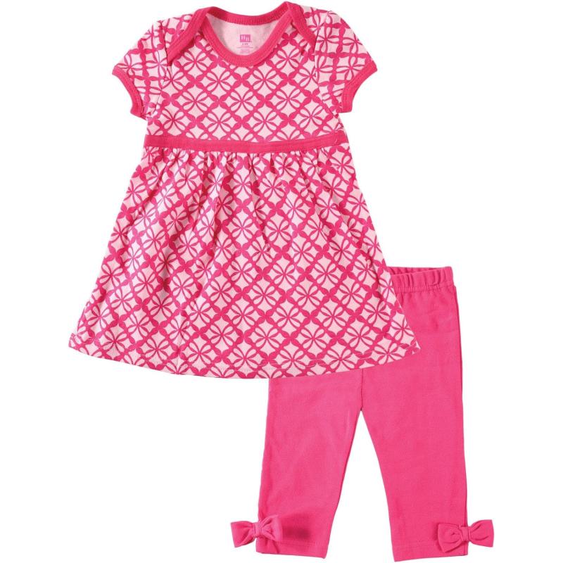 Hudson Baby dress and leggings set is the cutest fashion dress outfit for your baby girl. Our dress and leggings are made with 100% super-soft, comfortable interlock cotton. The sleeveless dress will keep her cool on warm days while the pants match the outfit perfectly. Fun and fashionable colors and prints.