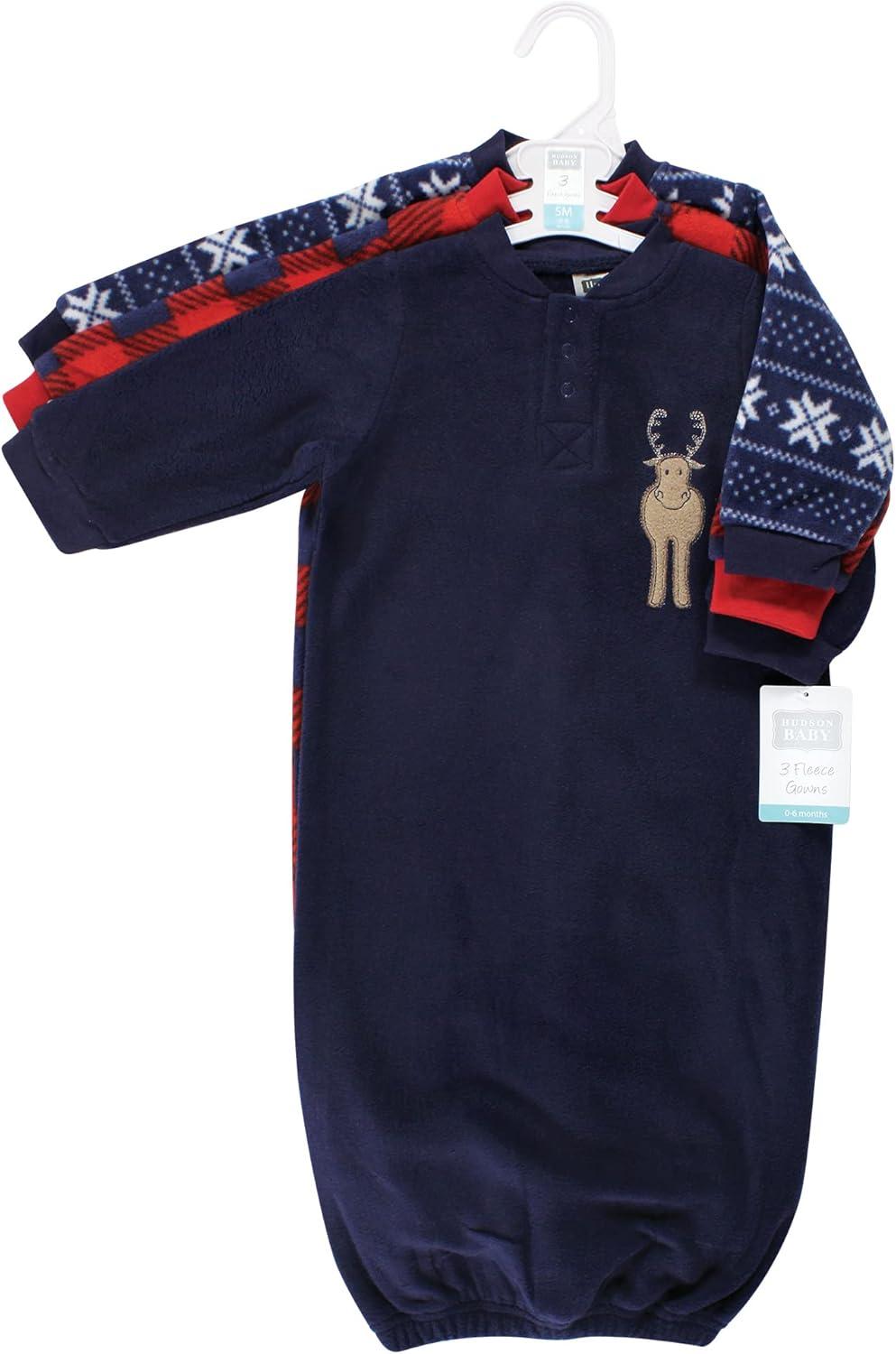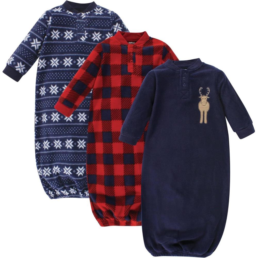 Hudson Baby fleece gowns feature playful patterns for sweet dreams. Our cozy fleece fabric is super-soft and gentle on baby's skin, making sleep time comfortable. The elastic band at the bottom and a lap neck make dressing and diaper changes a breeze.