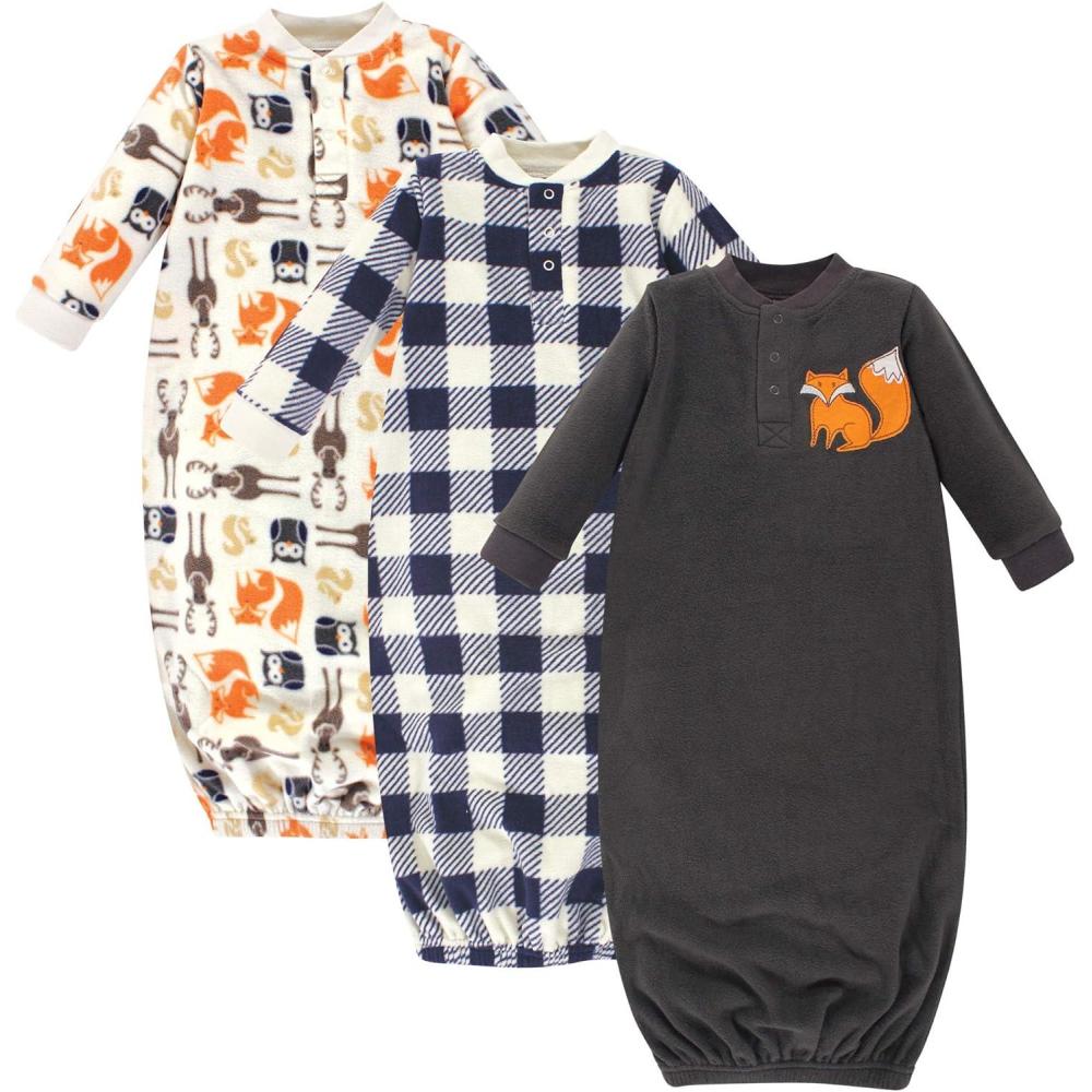 Hudson Baby fleece gowns feature playful patterns for sweet dreams. Our cozy fleece fabric is super-soft and gentle on baby's skin, making sleep time comfortable. The elastic band at the bottom and a lap neck make dressing and diaper changes a breeze.