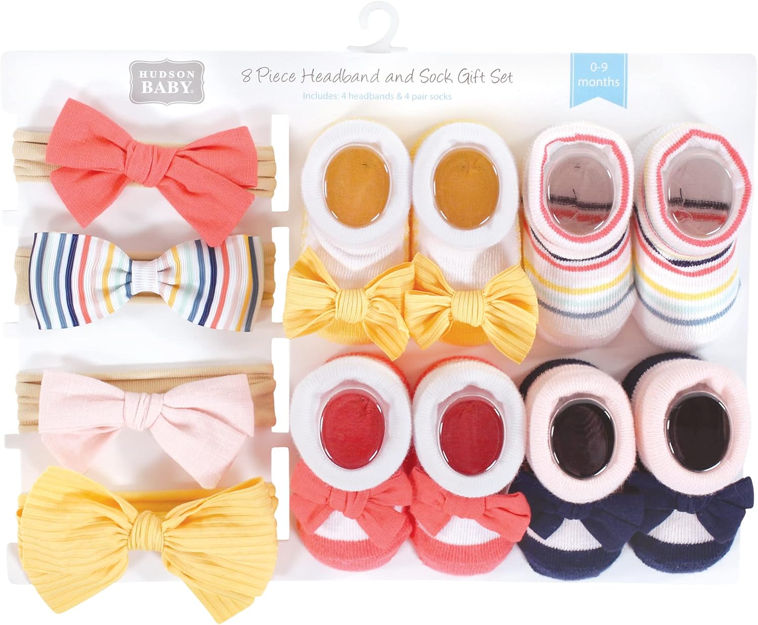 Hudson Baby socks and headband giftset is the perfect accessory set for your little one. Our giftset includes coordinating headbands and socks so your baby is looking fashionable from head to toe. Our headbands and socks are great for dressing up or everyday wear. Our giftset is packaged very nicely and makes a terrific baby shower gift.