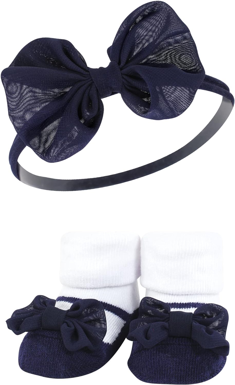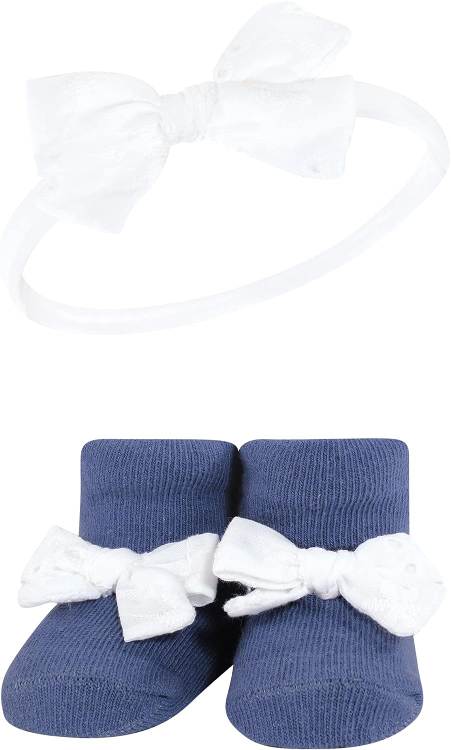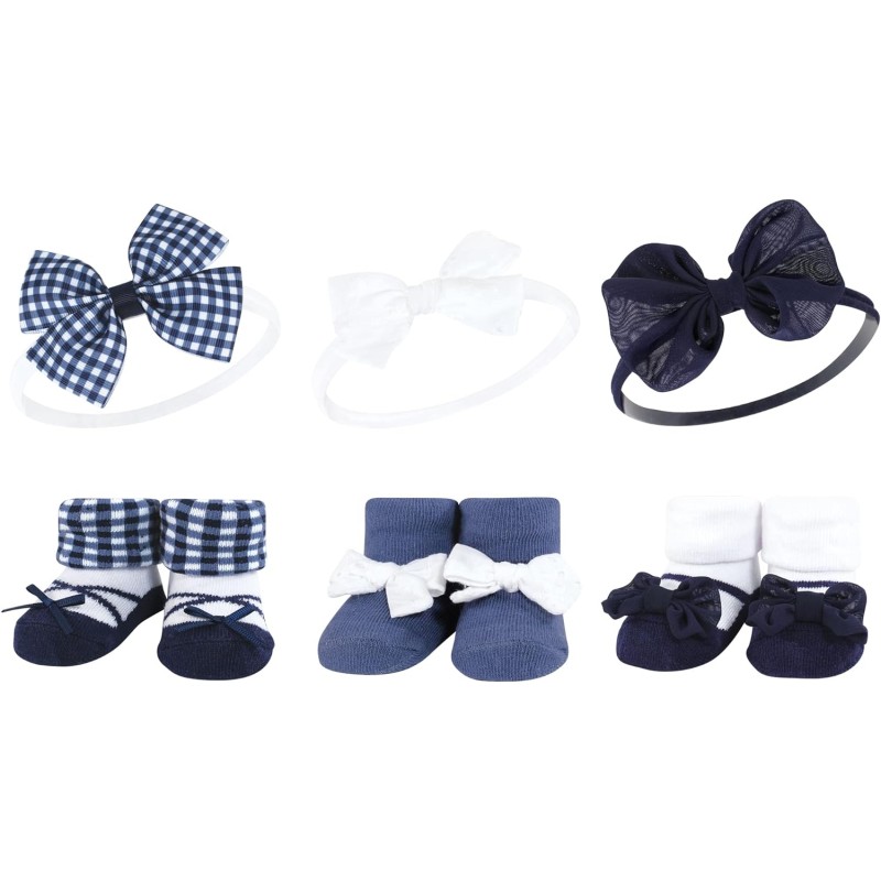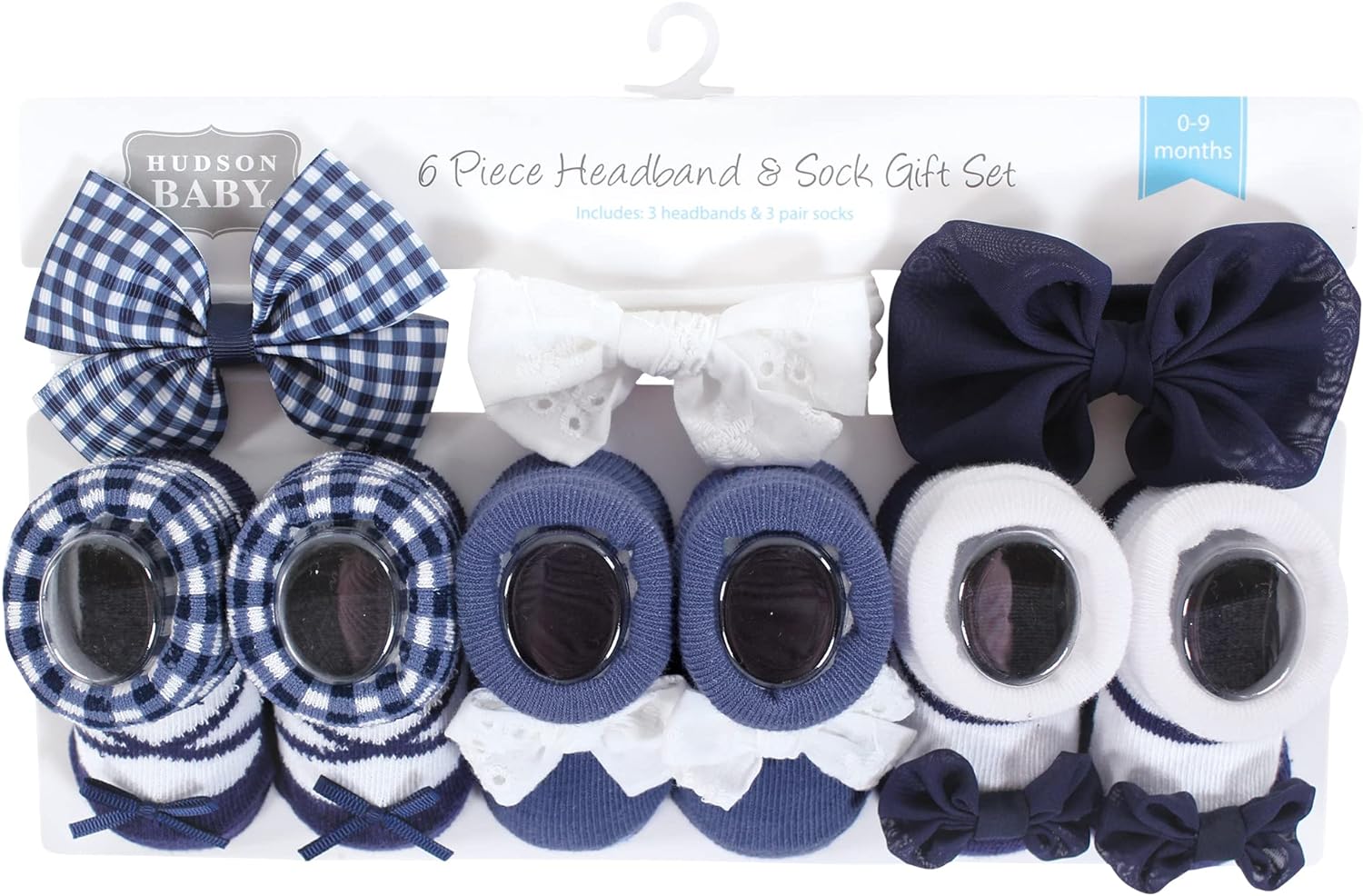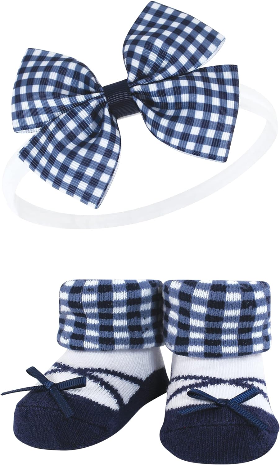 Hudson Baby baby-girls Headband and Socks Giftset(Navy Gingham)