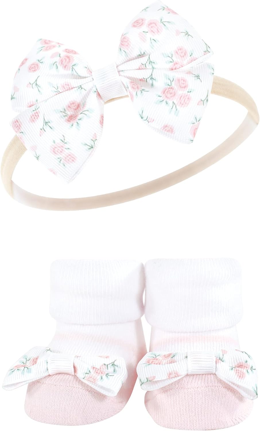 Hudson Baby baby-girls Headband and Socks Giftset(Pink Floral Chambray)