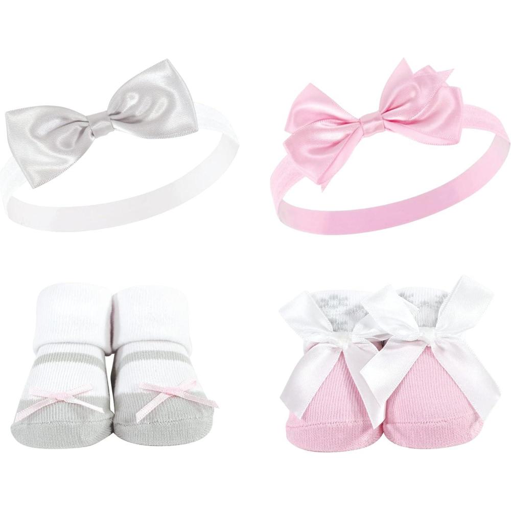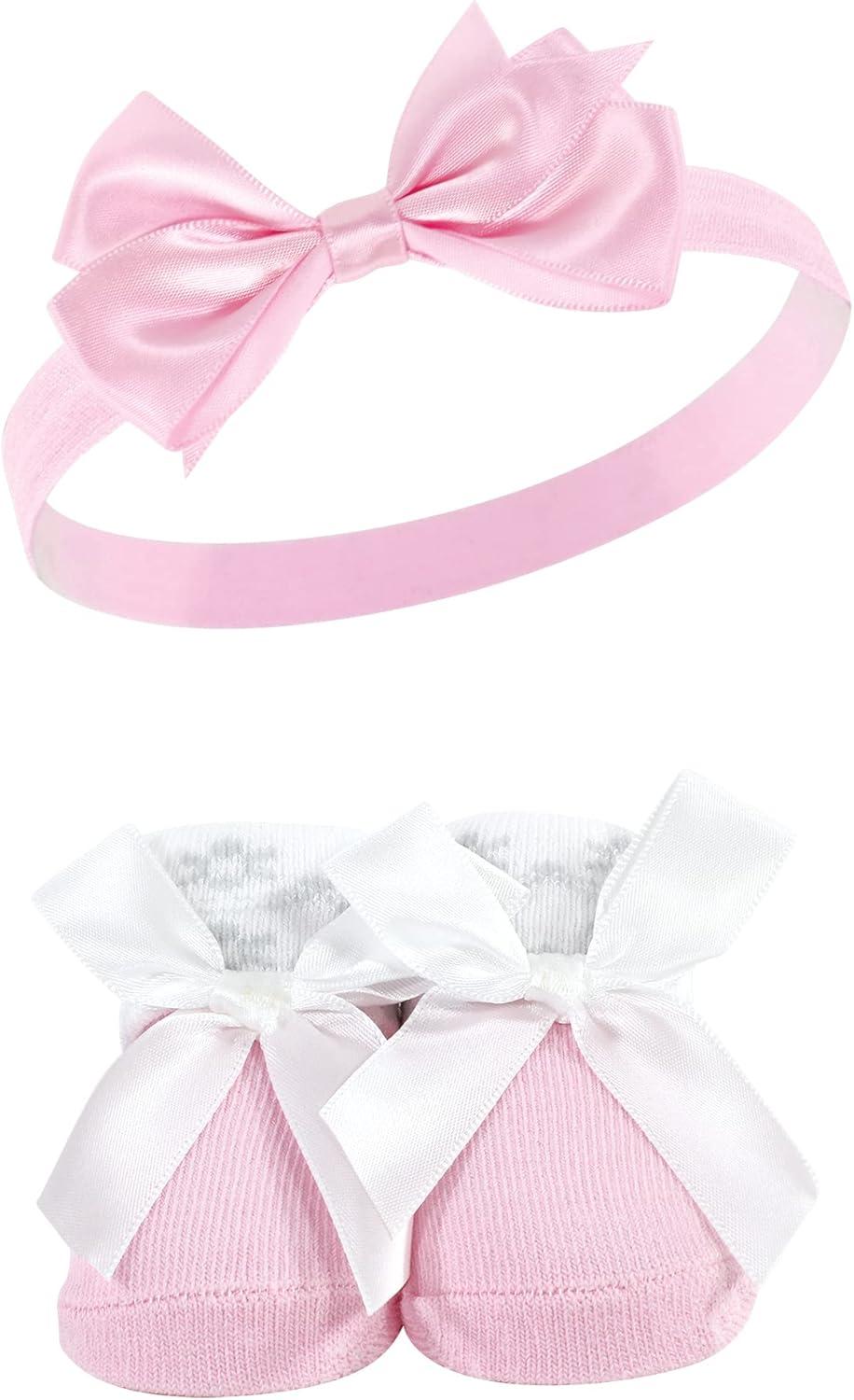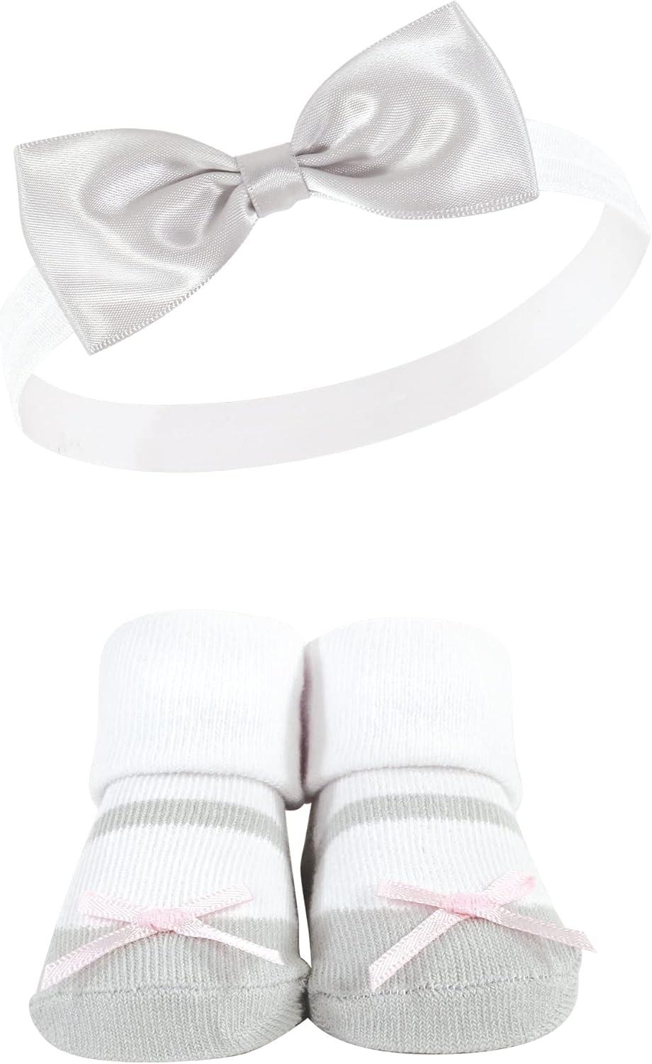Hudson Baby baby-girls Headband and Socks Set(Pink Gray)