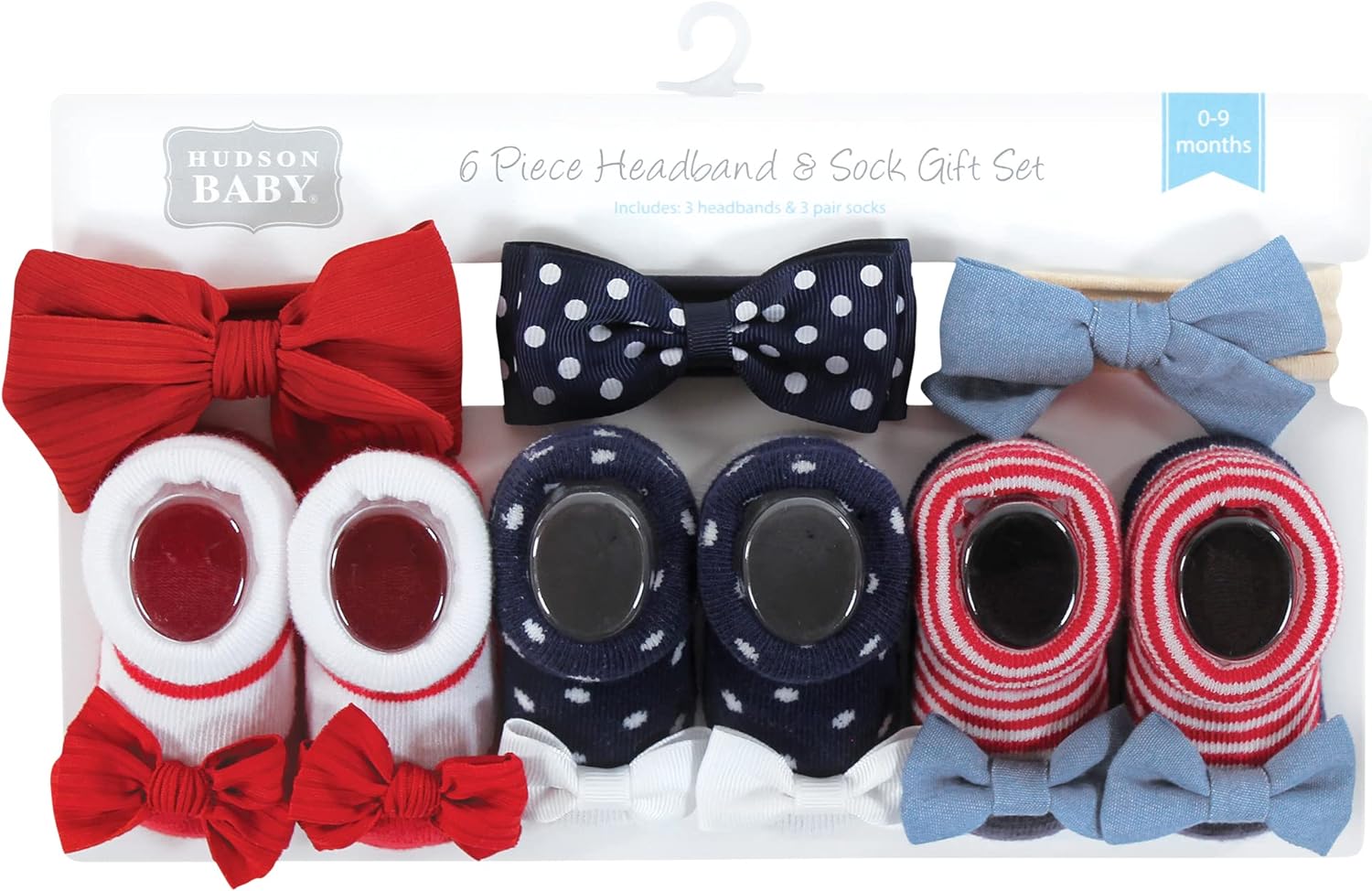 Hudson Baby baby-girls Headband and Socks Giftset(Red Chambray)
