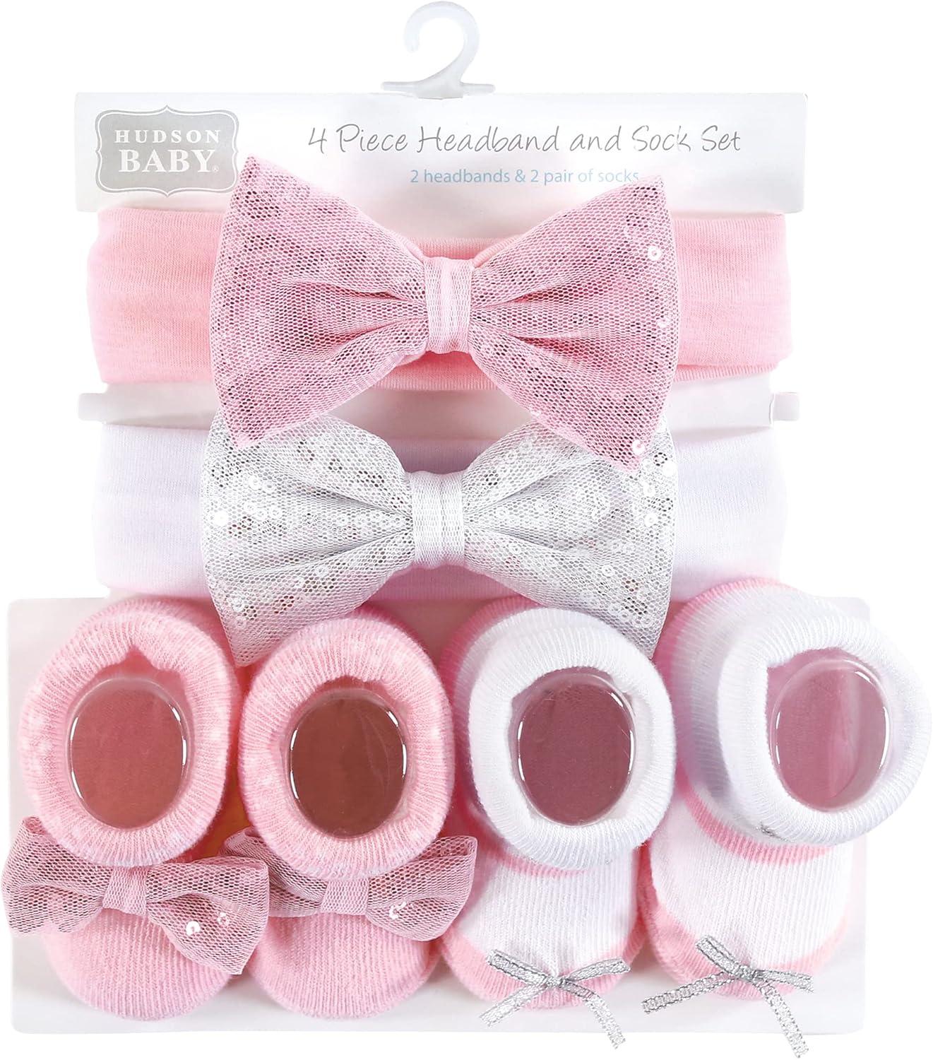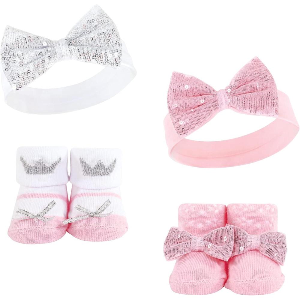 Hudson Baby baby-girls Headband and Socks Set(Princess 4-piece)