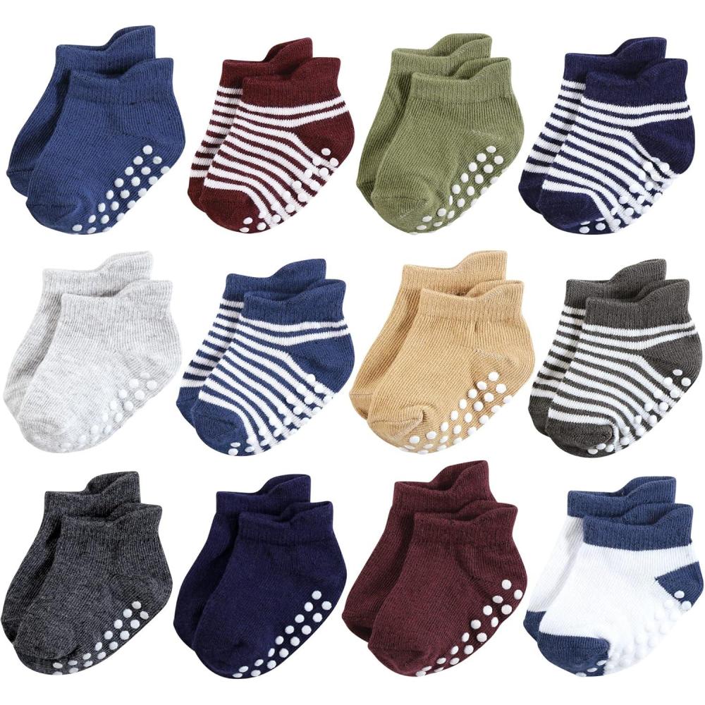Hudson Baby socks are ideal baby socks for everyday wear with cotton-rich fabric that are soft and comfortable on your baby's tiny little feet. Our stretchable design makes for proper fit and no fuss dressing. Our non-skid grippers are perfect for little ones and toddlers walking and running, helping prevent trips and falls. Made with soft, cushy fabric, our socks are a great addition to your little one's outfit.