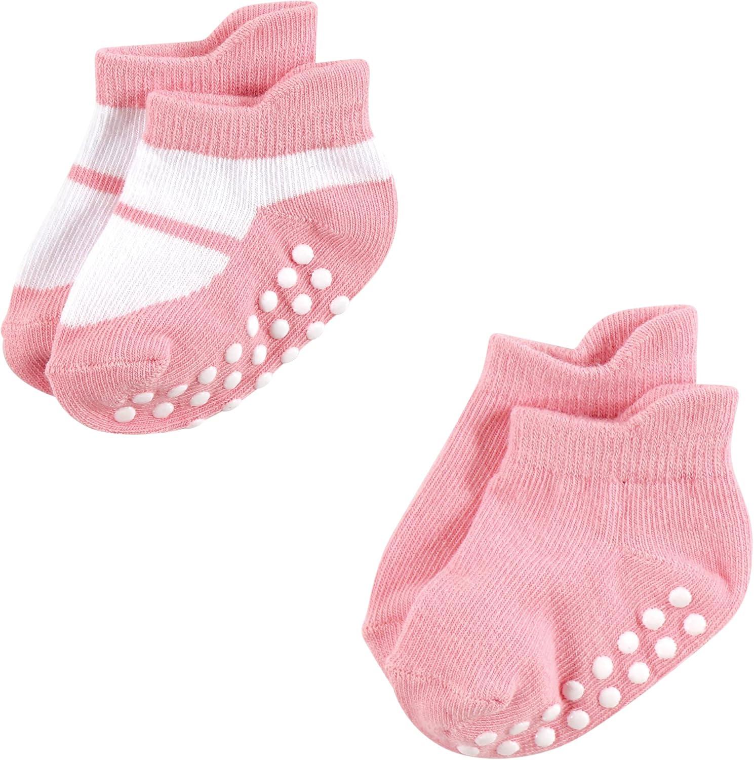 Hudson Baby Baby Girls’ Non-Skid No-Show Socks(Pink Green)