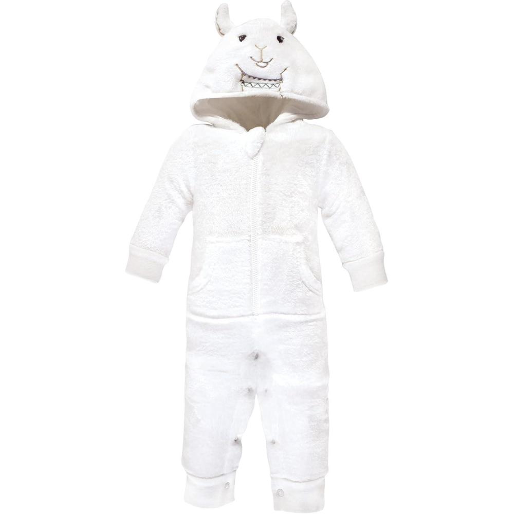 Hudson Baby baby-girls Plush Jumpsuits Animal Face(Neutral Llama)