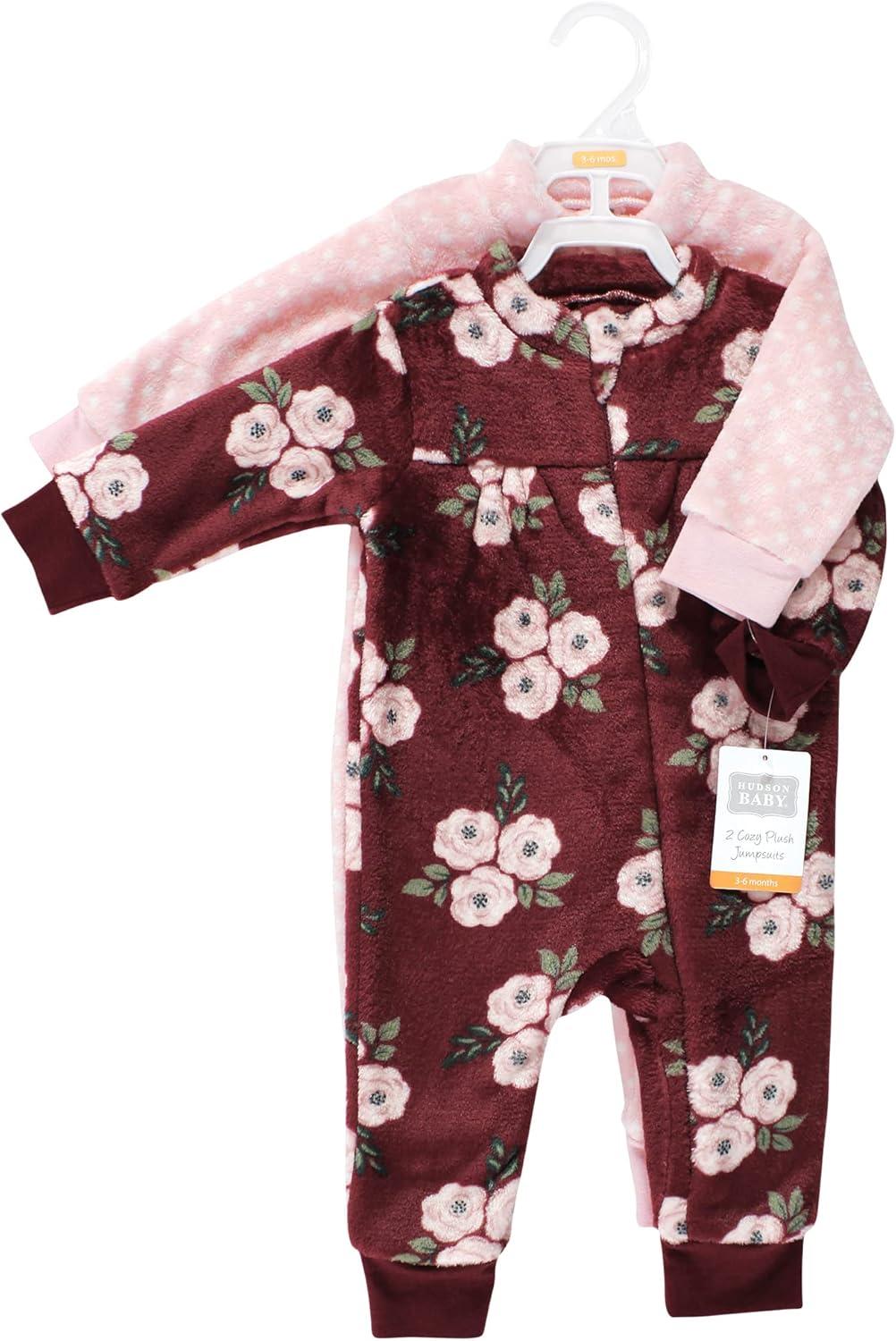 Hudson Baby baby-girls Plush Jumpsuits(Burgundy Floral)