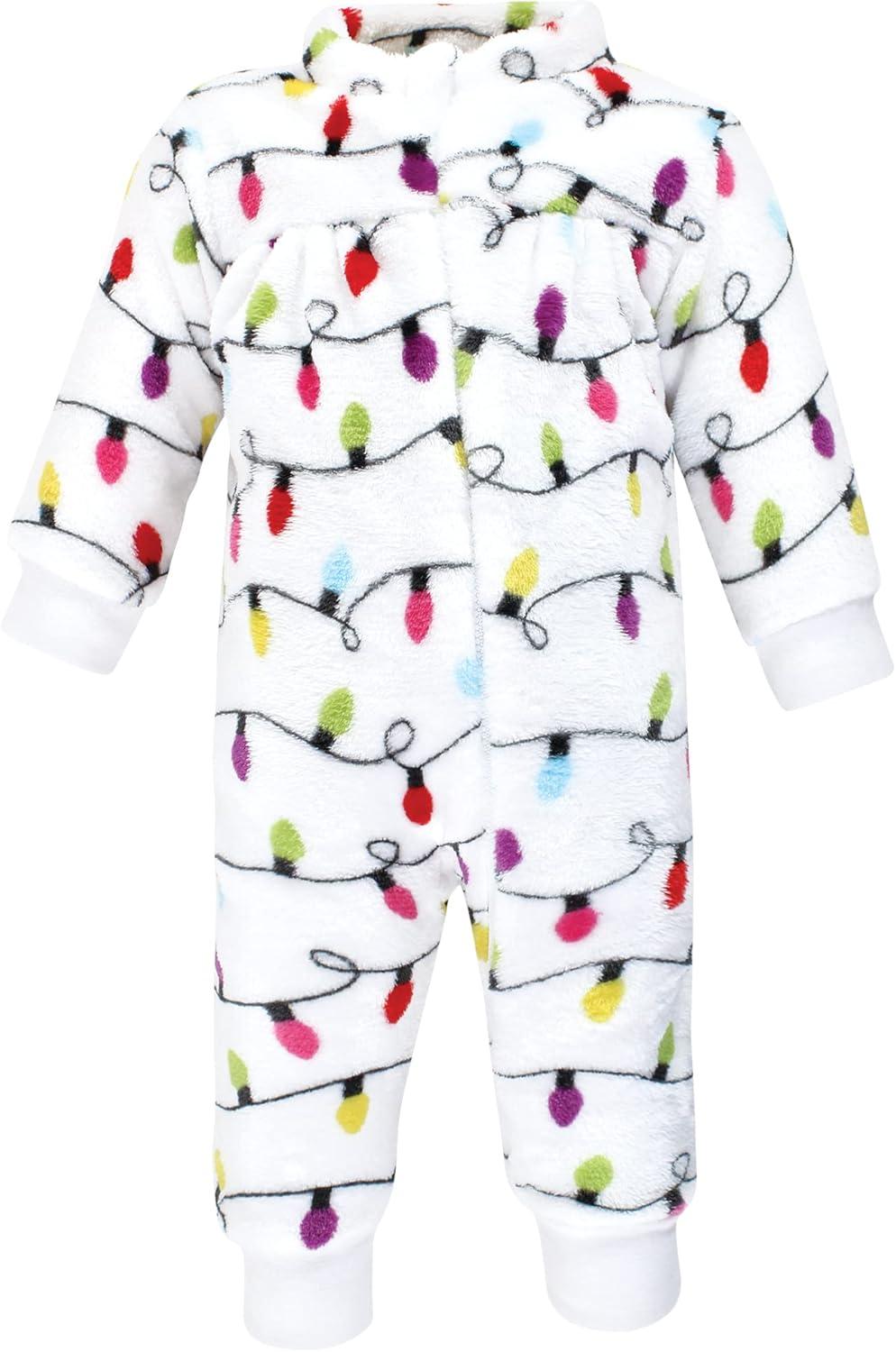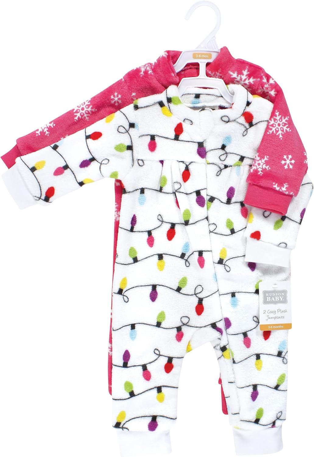 Hudson Baby baby-girls Plush Jumpsuits(Pink Christmas Lights)