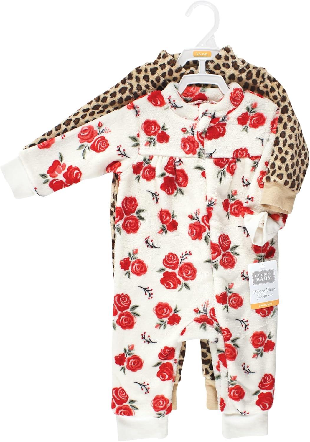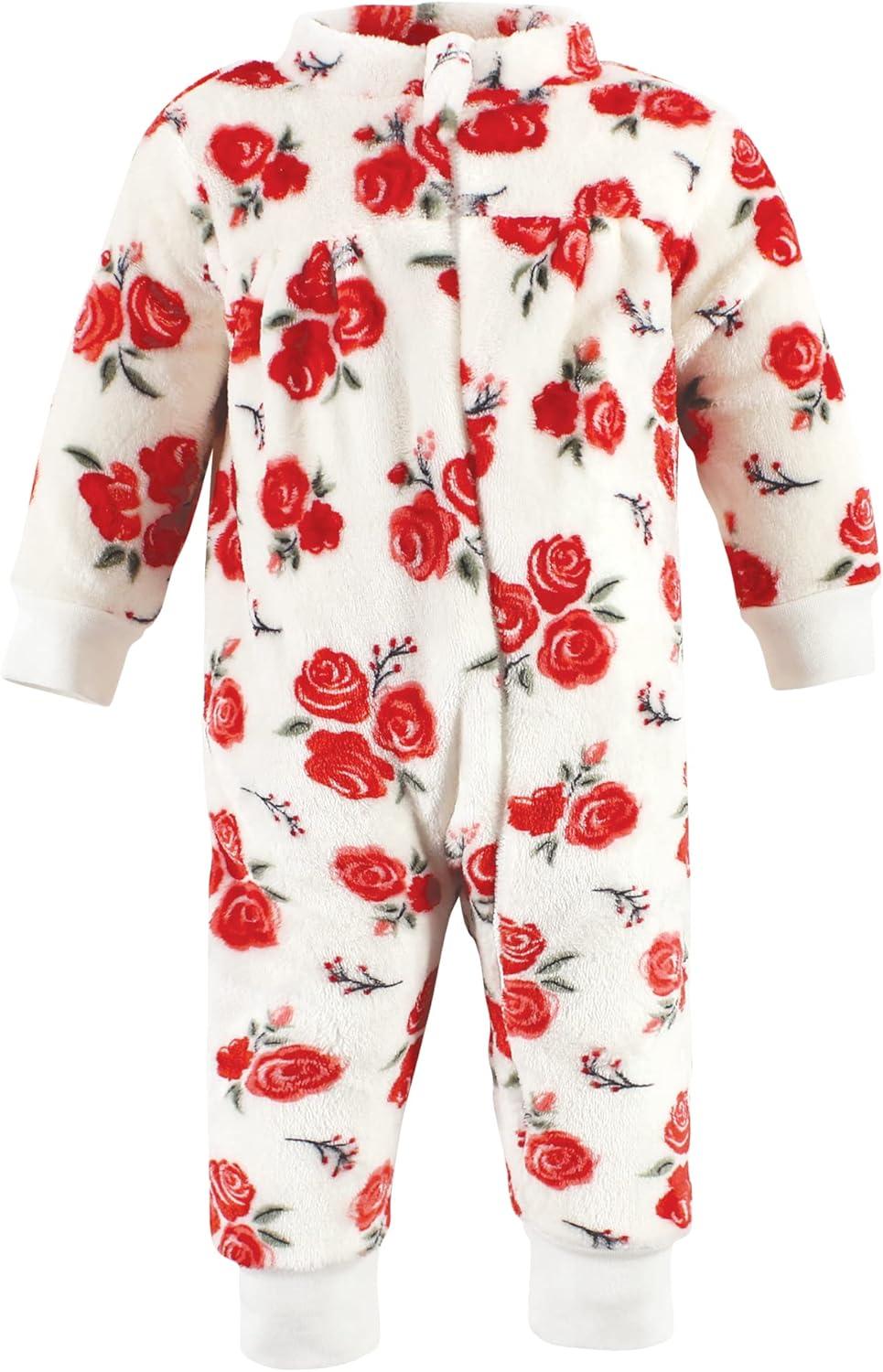 Hudson Baby baby-girls Plush Jumpsuits(Red Rose Leopard)