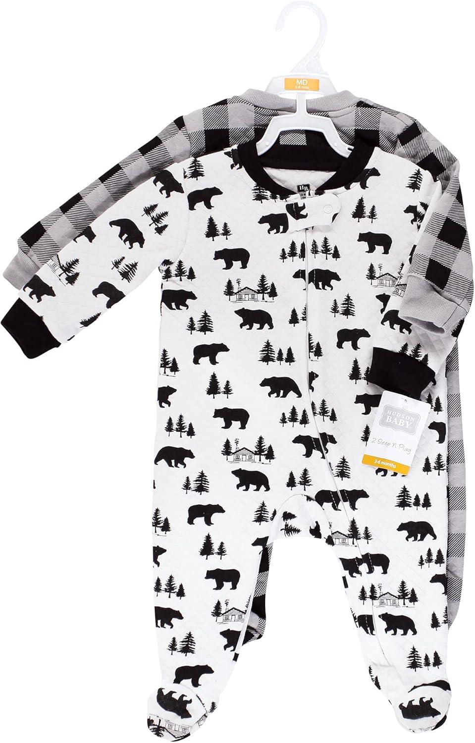 Hudson Baby Baby Girls’ Premium Quilted Zipper Sleep and Play(Bear Gray Black)