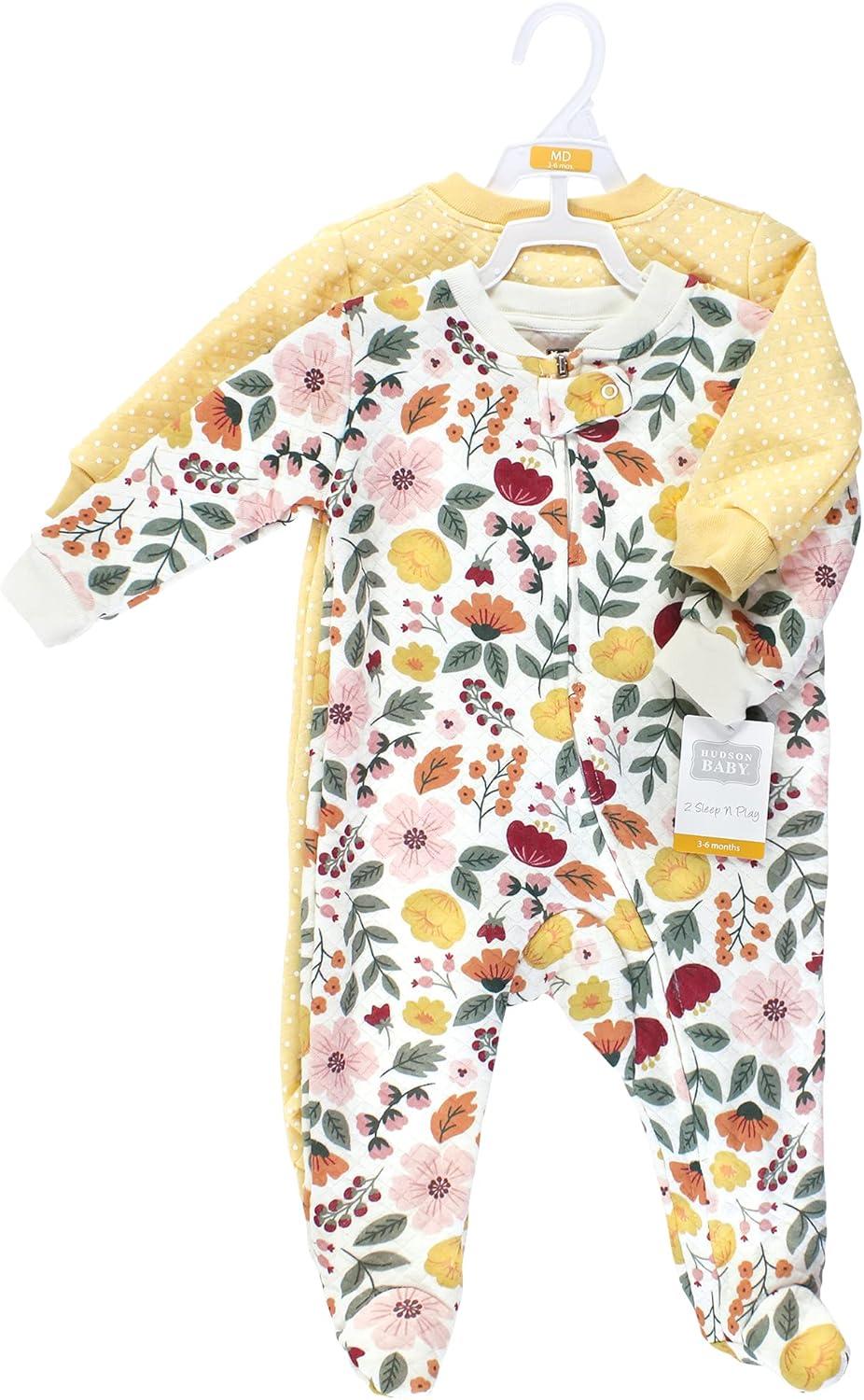 Hudson Baby Baby Girls’ Premium Quilted Zipper Sleep and Play(Fall Botanical)