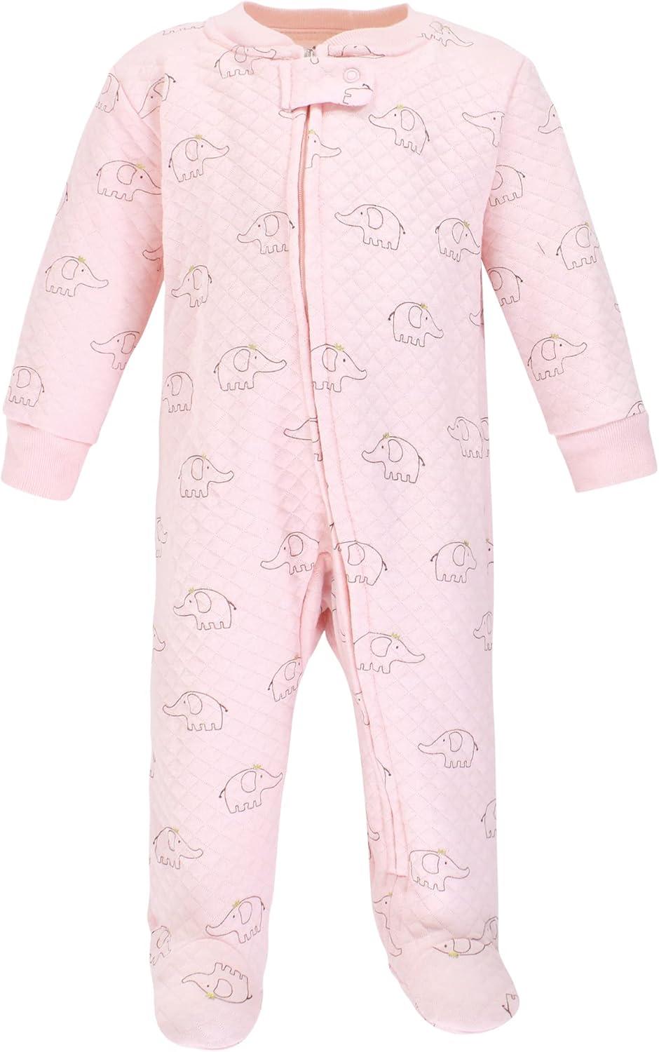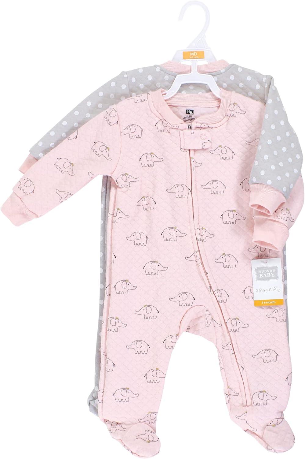 Hudson Baby Baby Girls’ Premium Quilted Zipper Sleep and Play(Pink Gray Elephant)