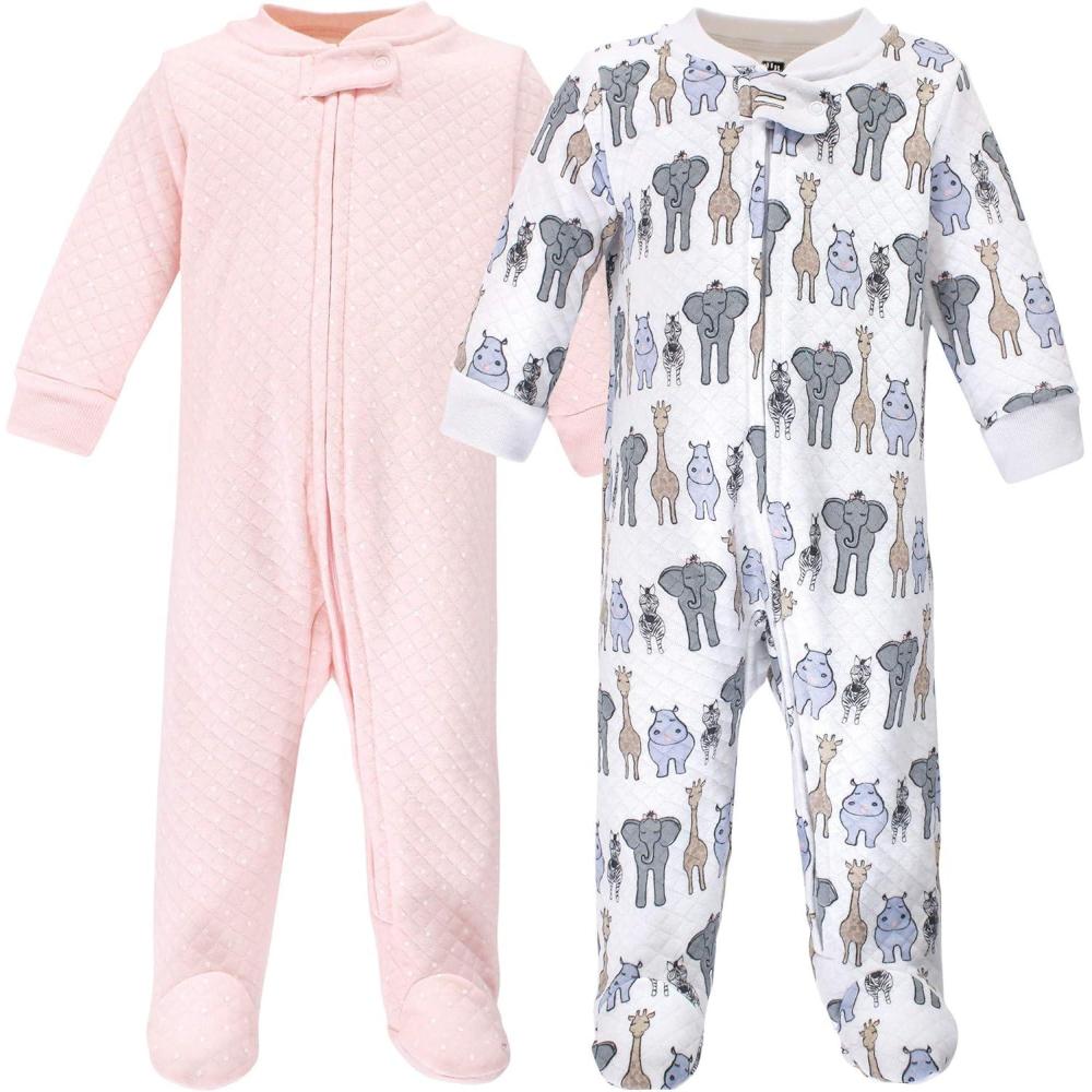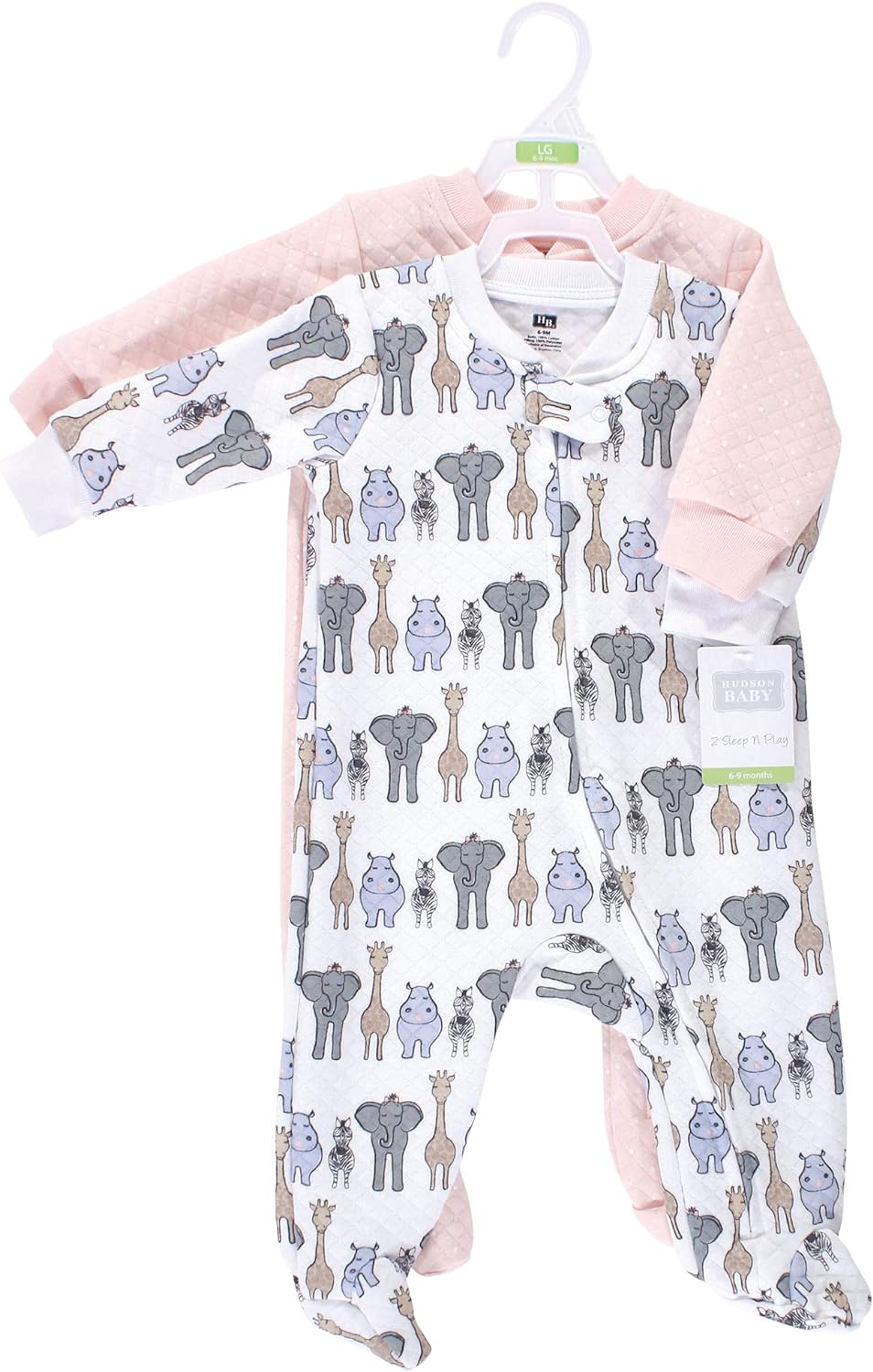Hudson Baby Baby Girls’ Premium Quilted Zipper Sleep and Play(Pink Safari)