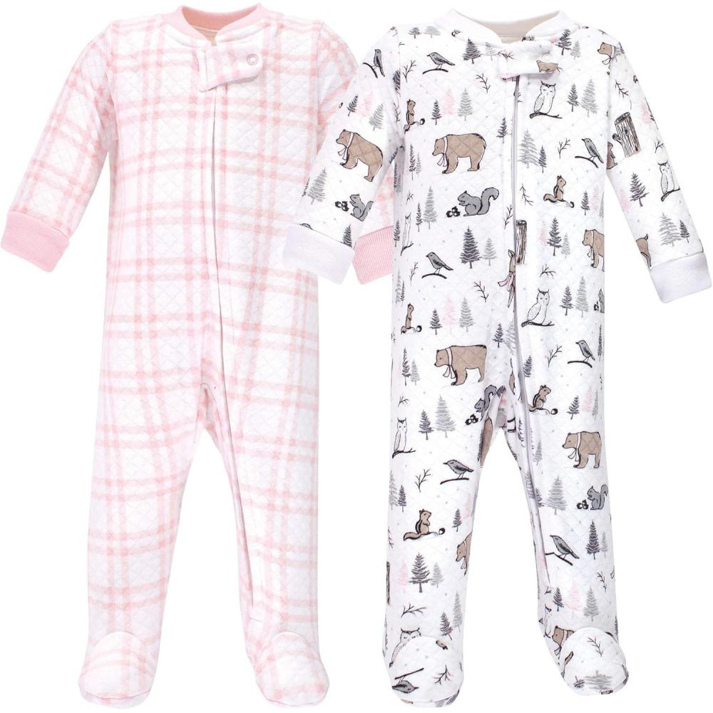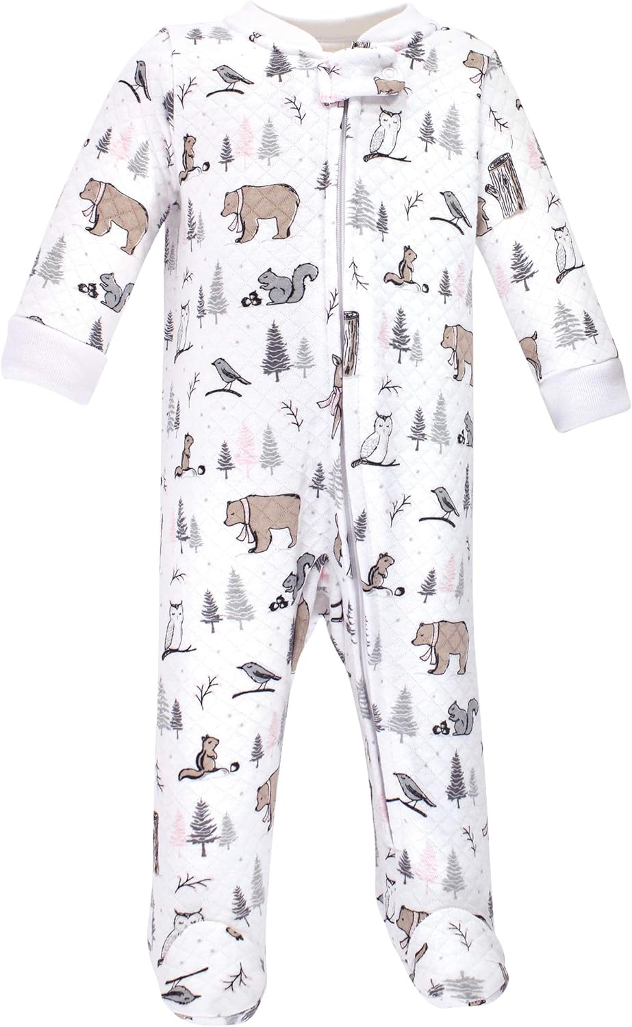 Hudson Baby Baby Girls’ Premium Quilted Zipper Sleep and Play(Winter Forest)