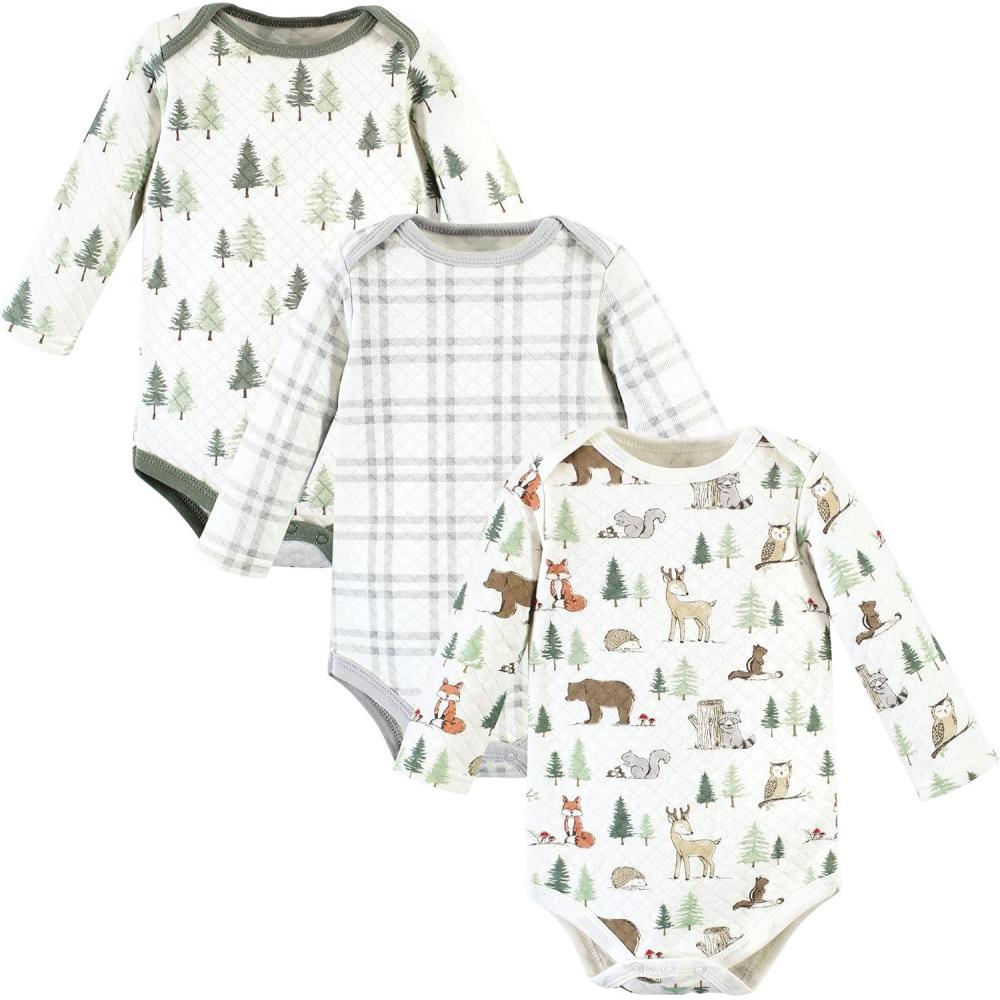 Hudson Baby baby-girls Quilted Long Sleeve Cotton Bodysuits(Forest Animals)
