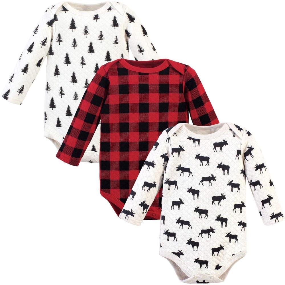 Hudson Baby baby-girls Quilted Long Sleeve Cotton Bodysuits(Moose)