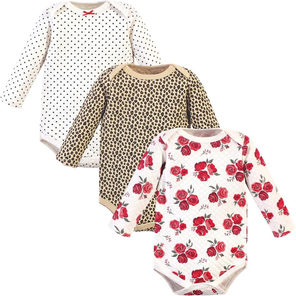 Hudson Baby baby-girls Quilted Long Sleeve Cotton Bodysuits(Rose Leopard)
