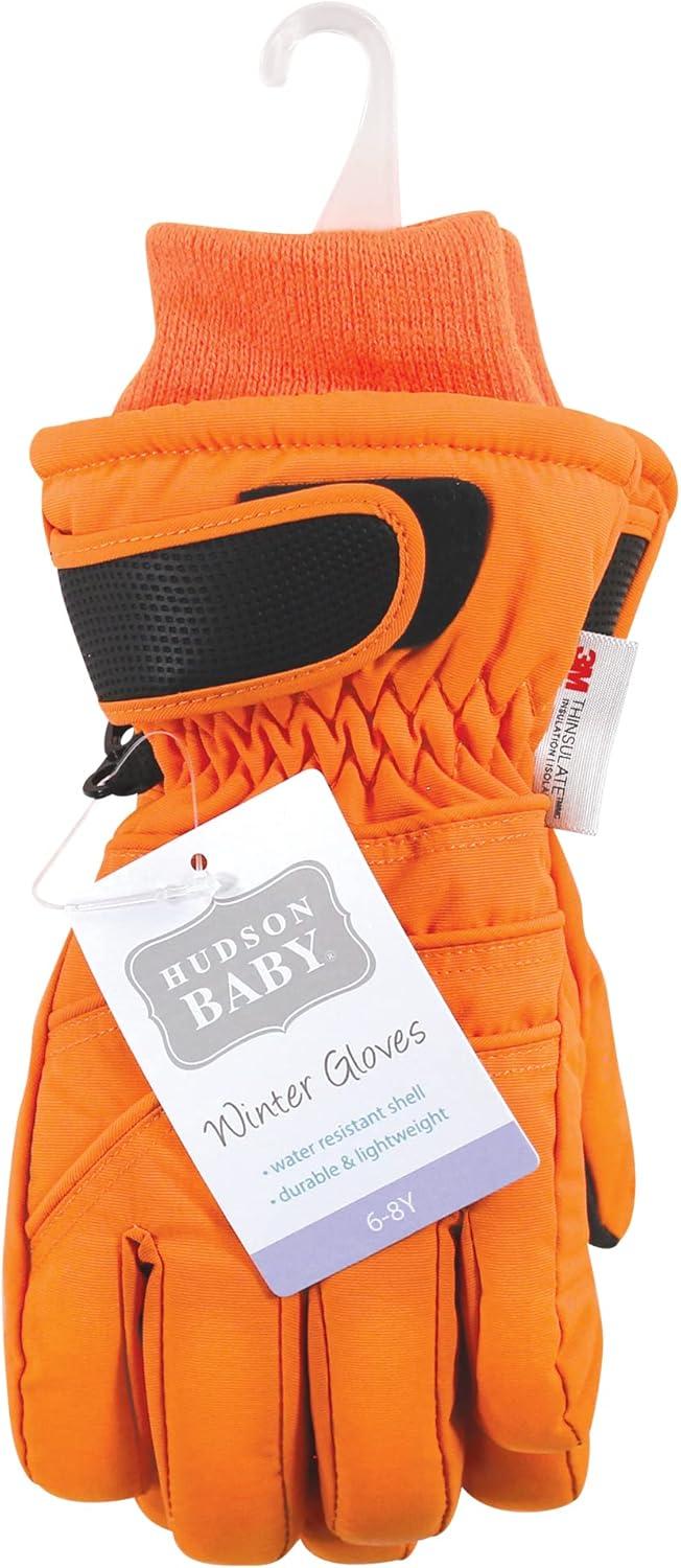 Hudson Baby gloves are a must-have for any active, winter venture. These wind and water-resistant Gloves will keep you warm and comfortable, making your next trip outdoors thoroughly enjoyable. Our gloves offer a maximum degree of durability and protection. Manufacturer recommended sizing up for a more comfortable fit. Our superior soft 3M Thinsulate lining offers incredible warmth for the coldest days. Featuring a gripper palm and fingers with adjustable Velcro strap and stretch ribbed cuff offer added protection from the elements and to keep gloves secure. The gloves are machine washable, perfect for a quick and easy cleaning after outdoor activities.